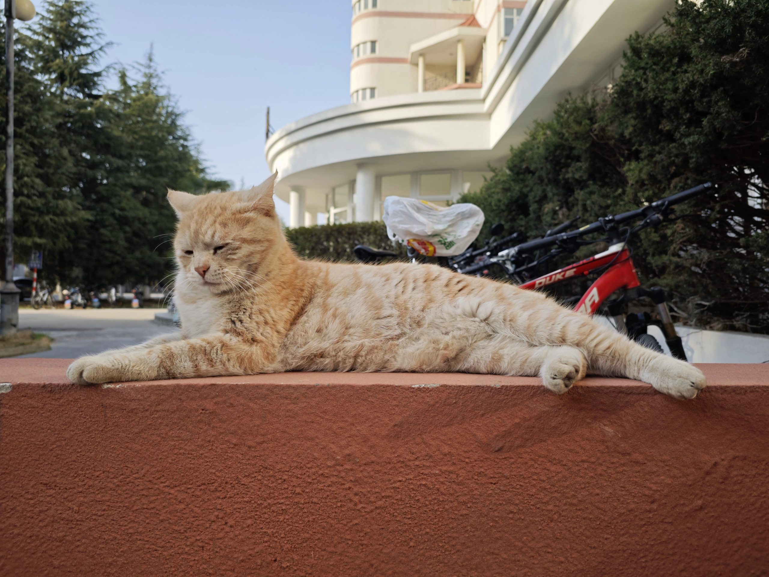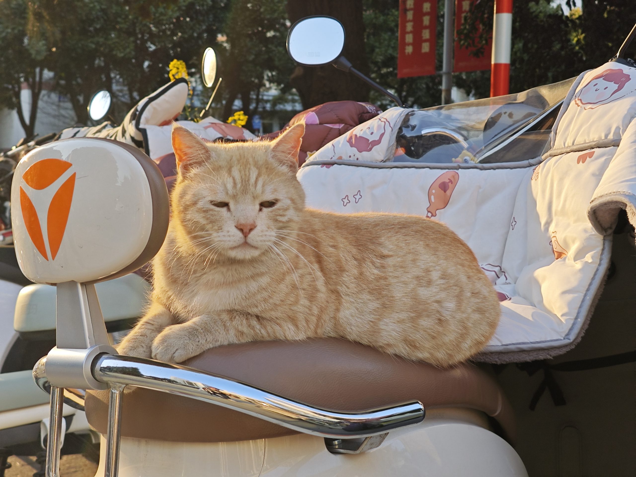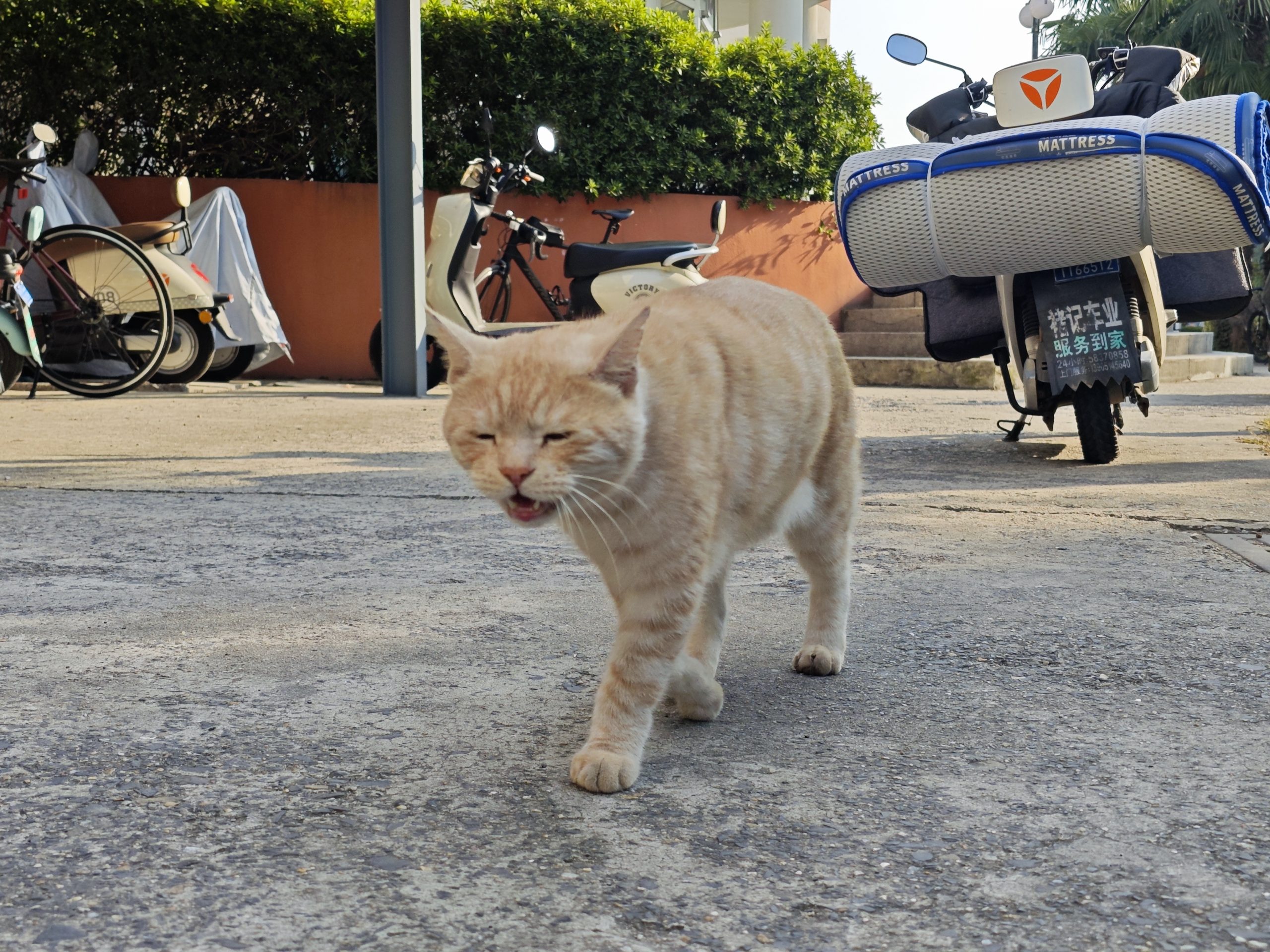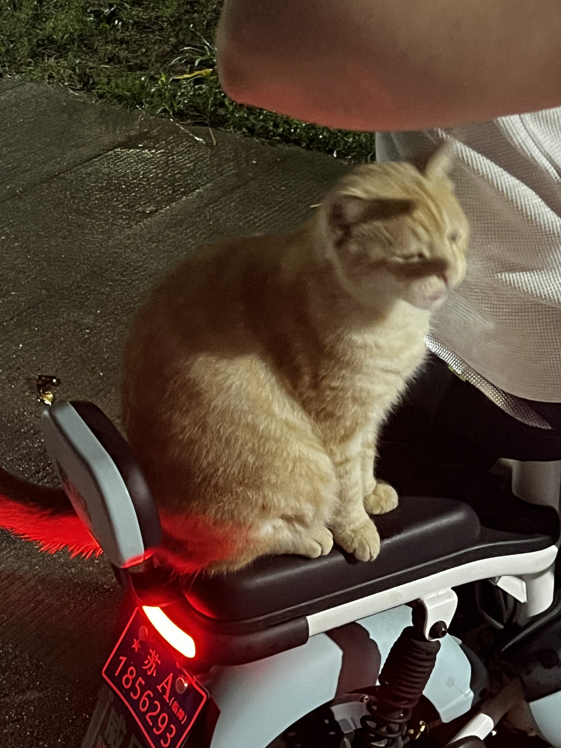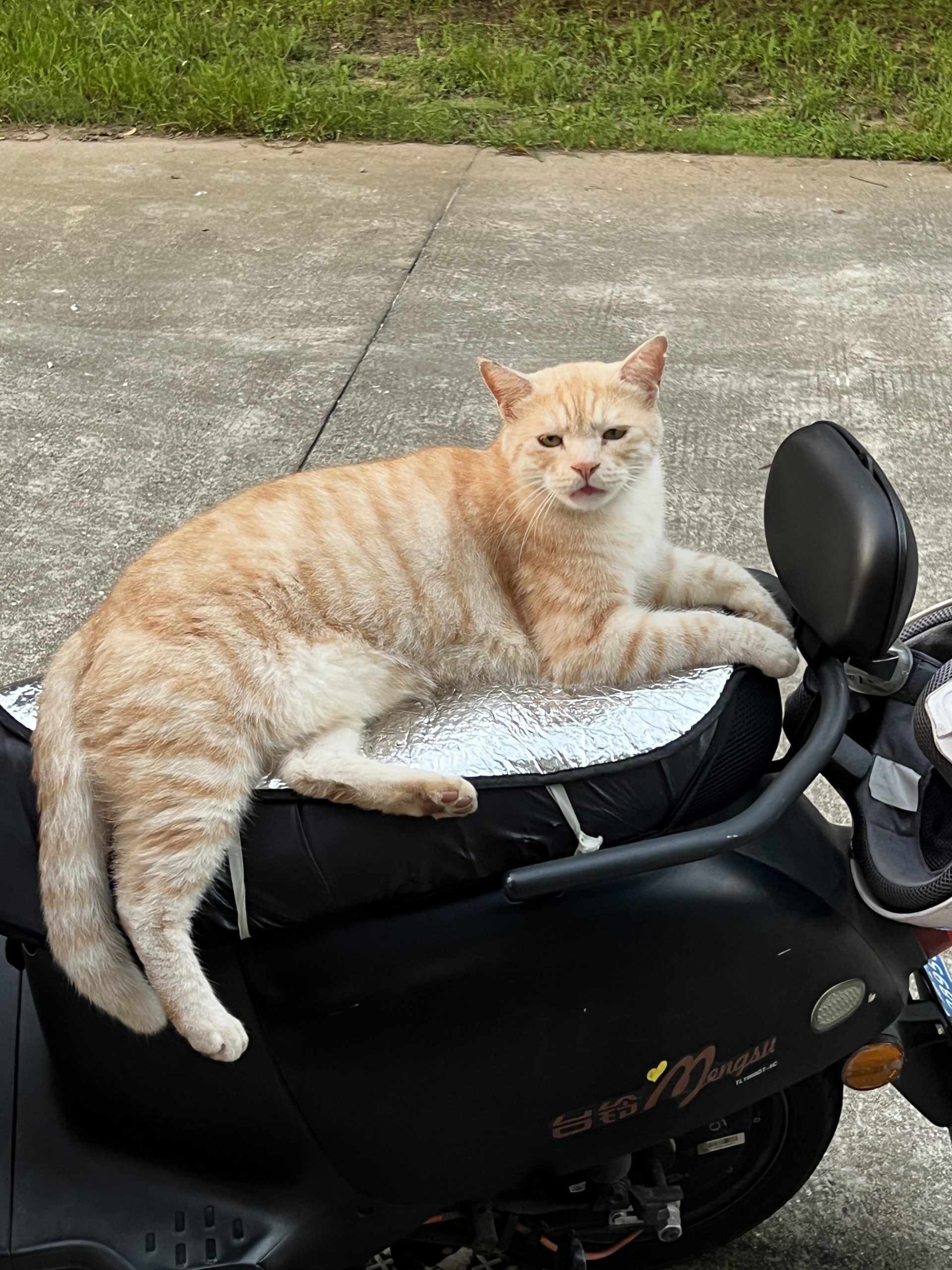 这是皮蛋,一只浅橘色、圆脸、嗓音沙哑的高冷猫猫。他常年混迹在19-21栋周边,喜欢趴台阶、霸占电动车,偶尔也会溜进宿舍蹭暖。