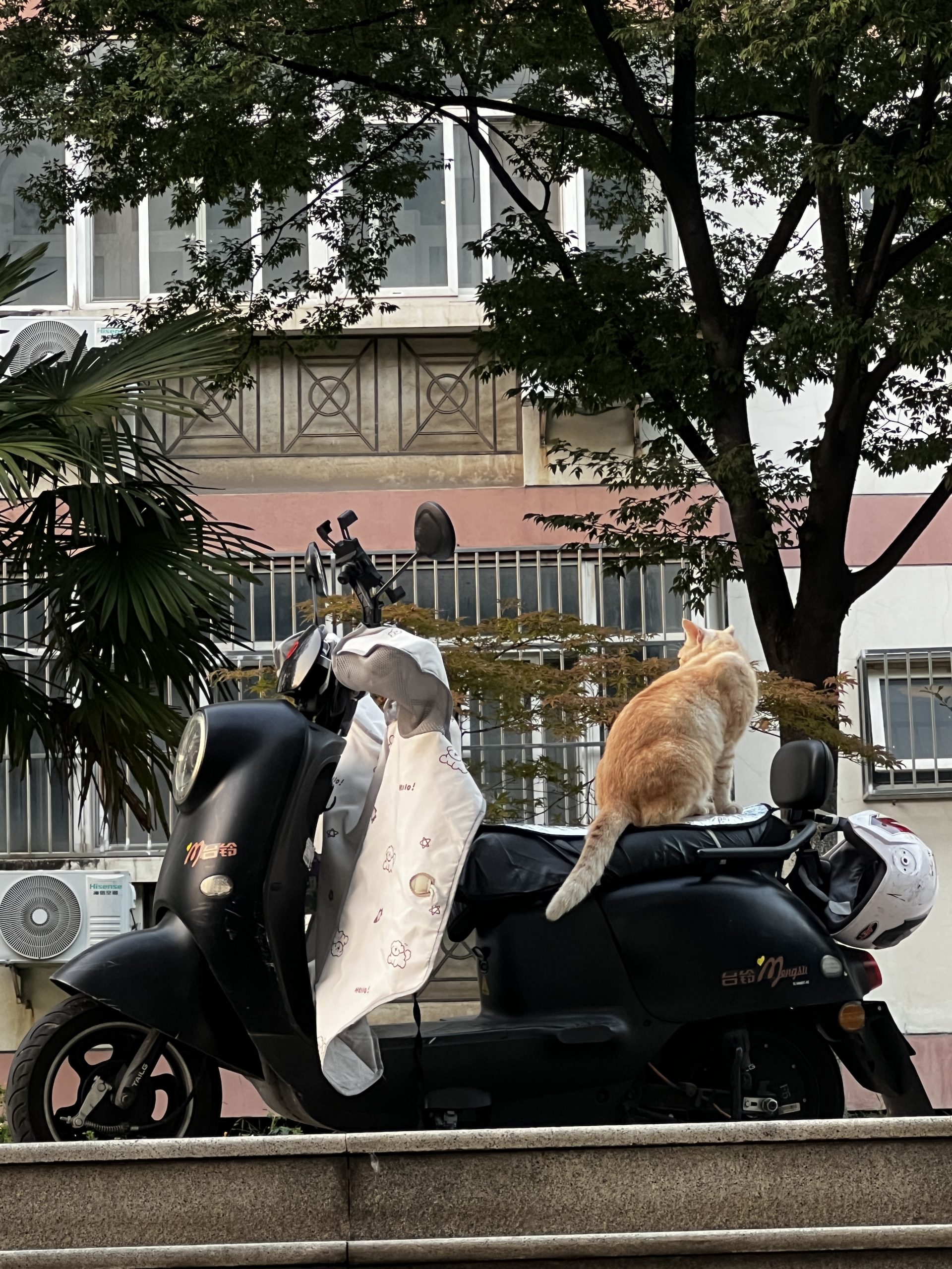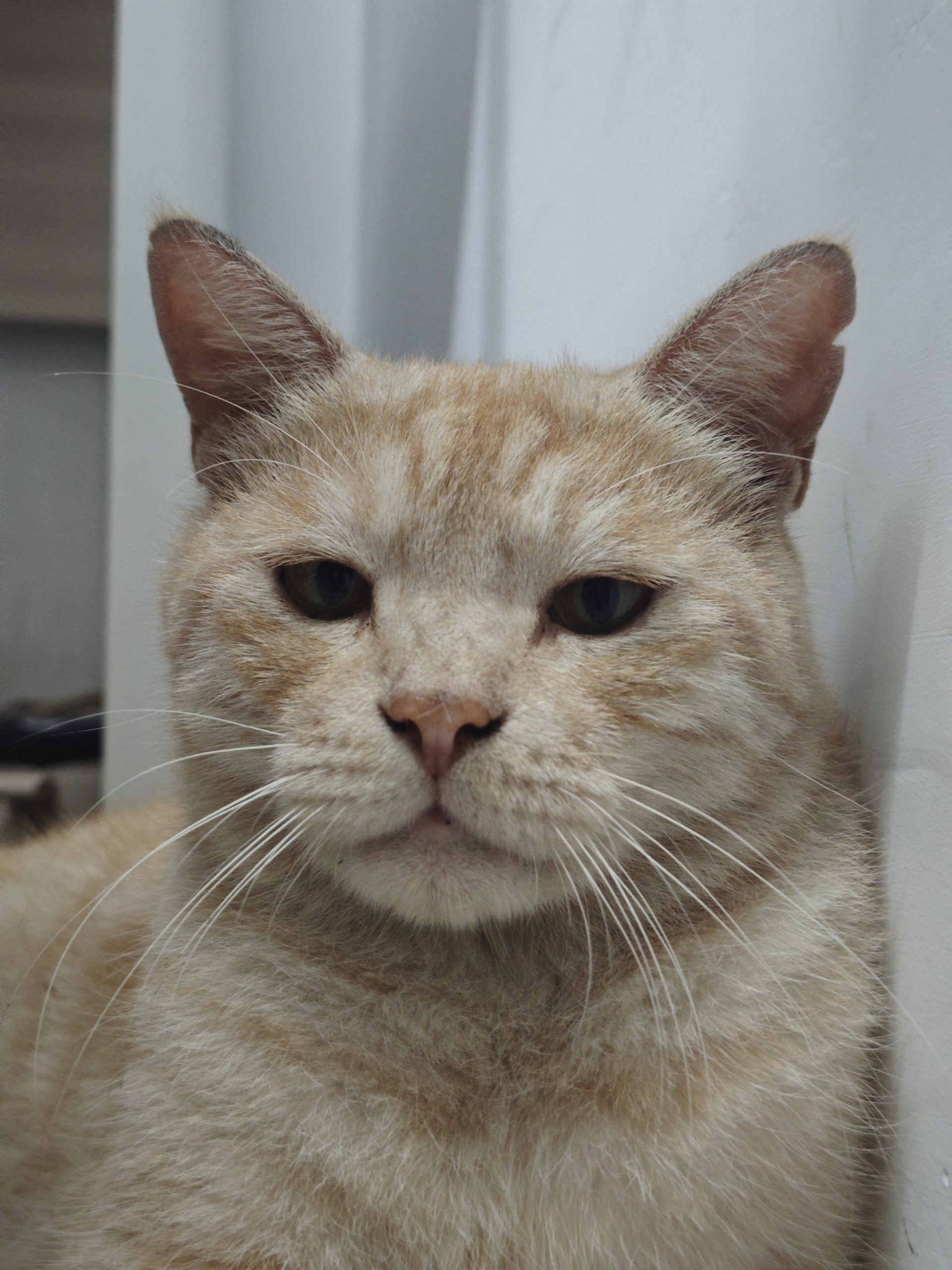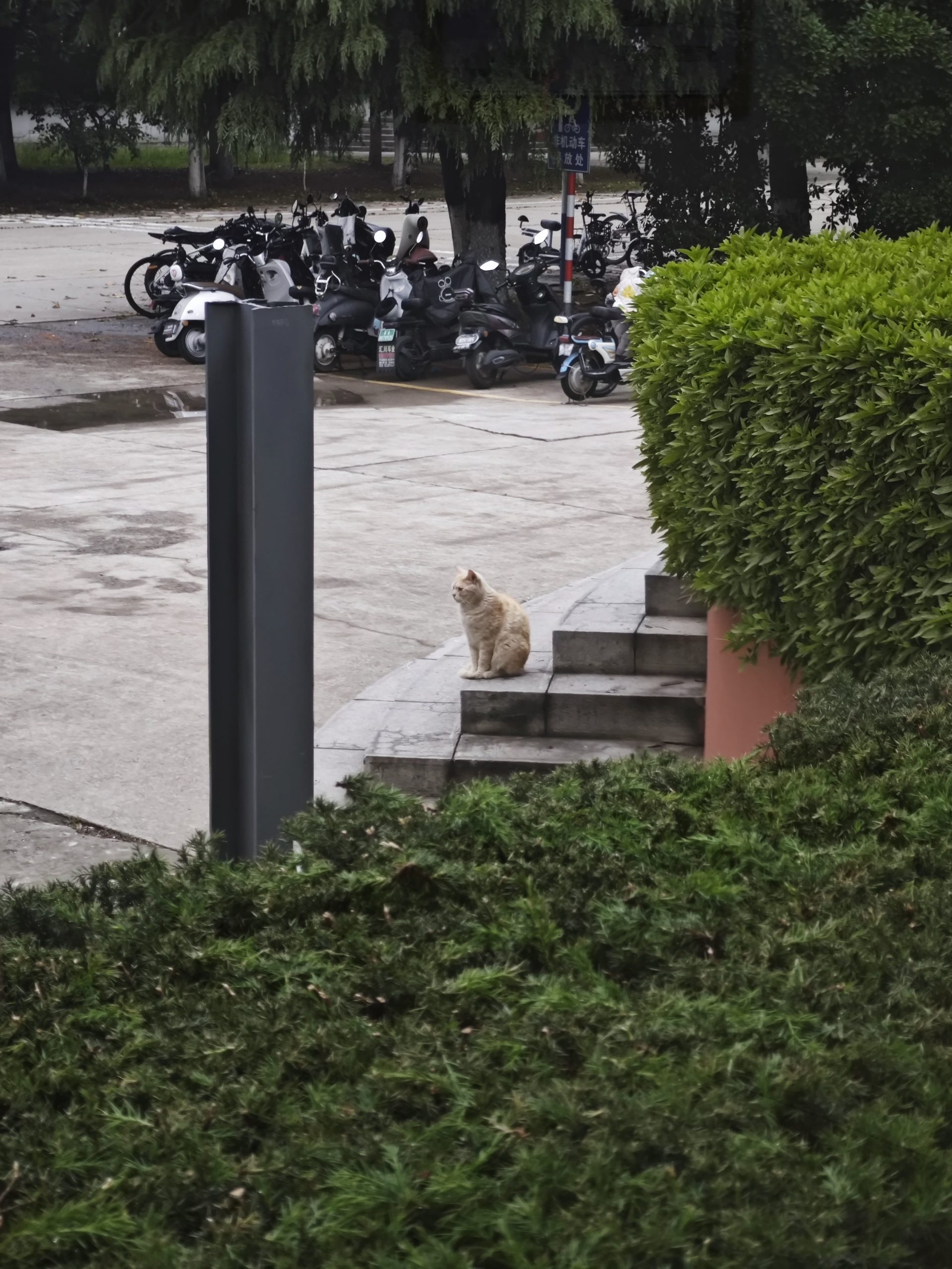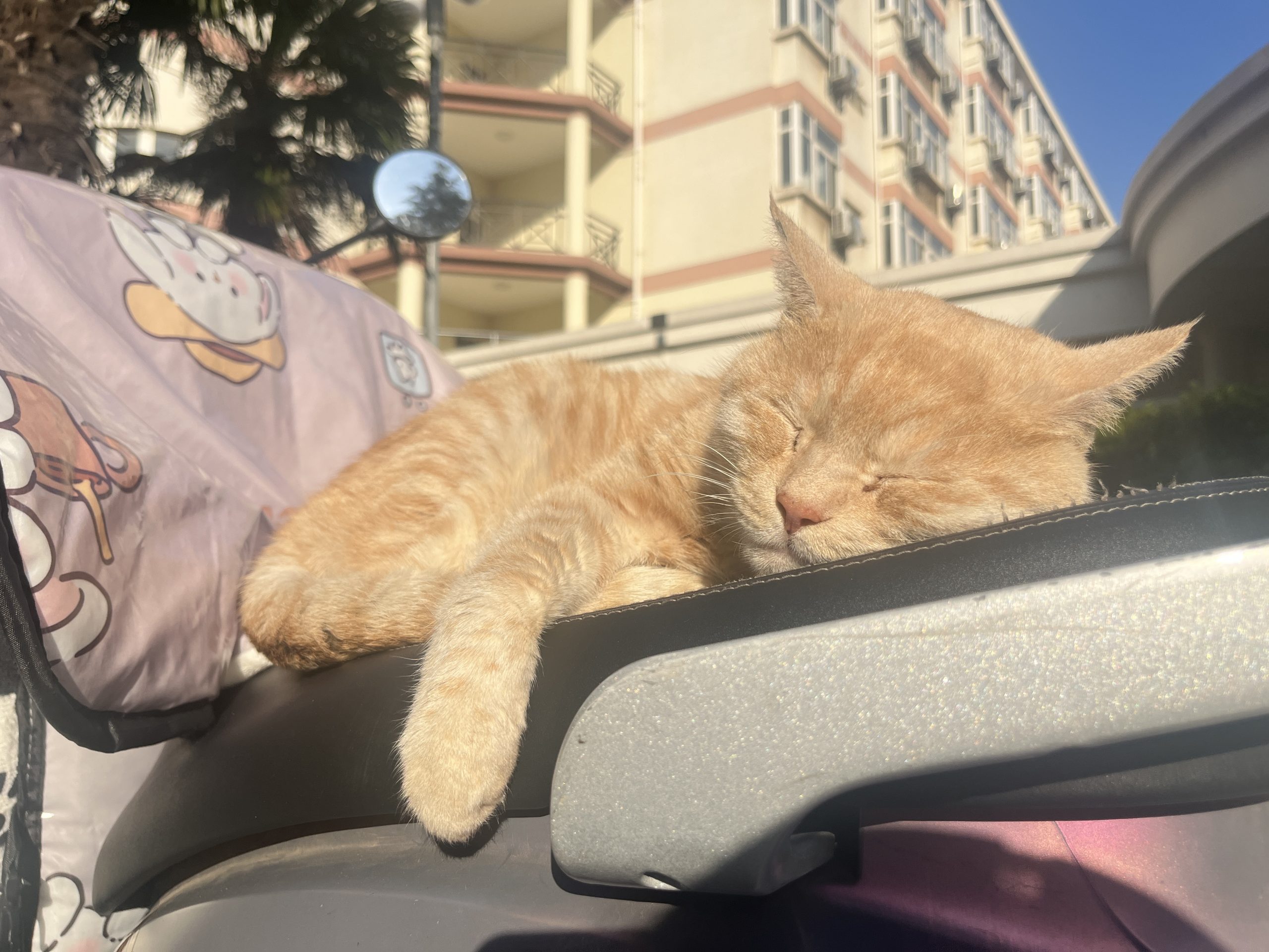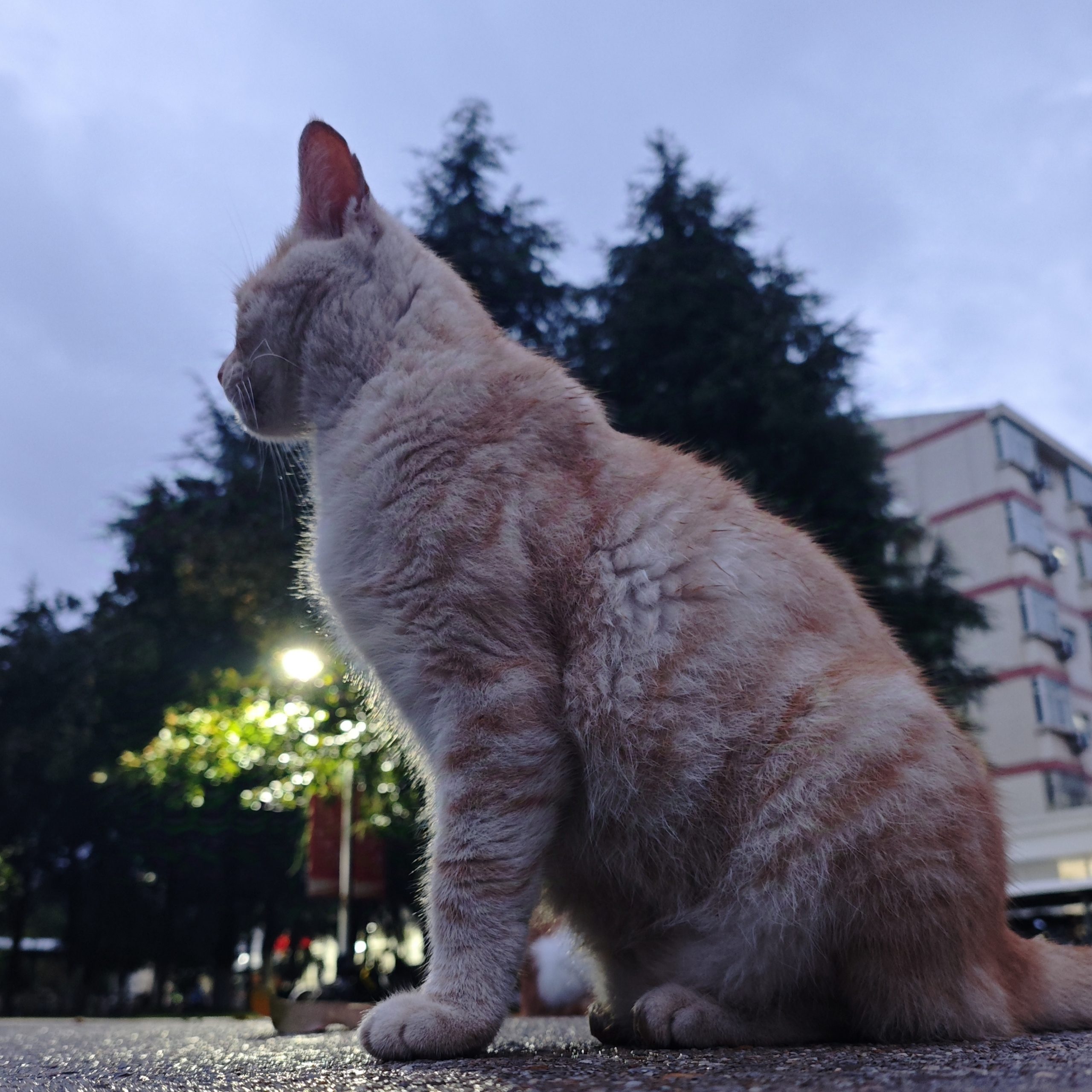 这是皮蛋,一只浅橘色、圆脸、嗓音沙哑的高冷猫猫。他常年混迹在19-21栋周边,喜欢趴台阶、霸占电动车,偶尔也会溜进宿舍蹭暖。