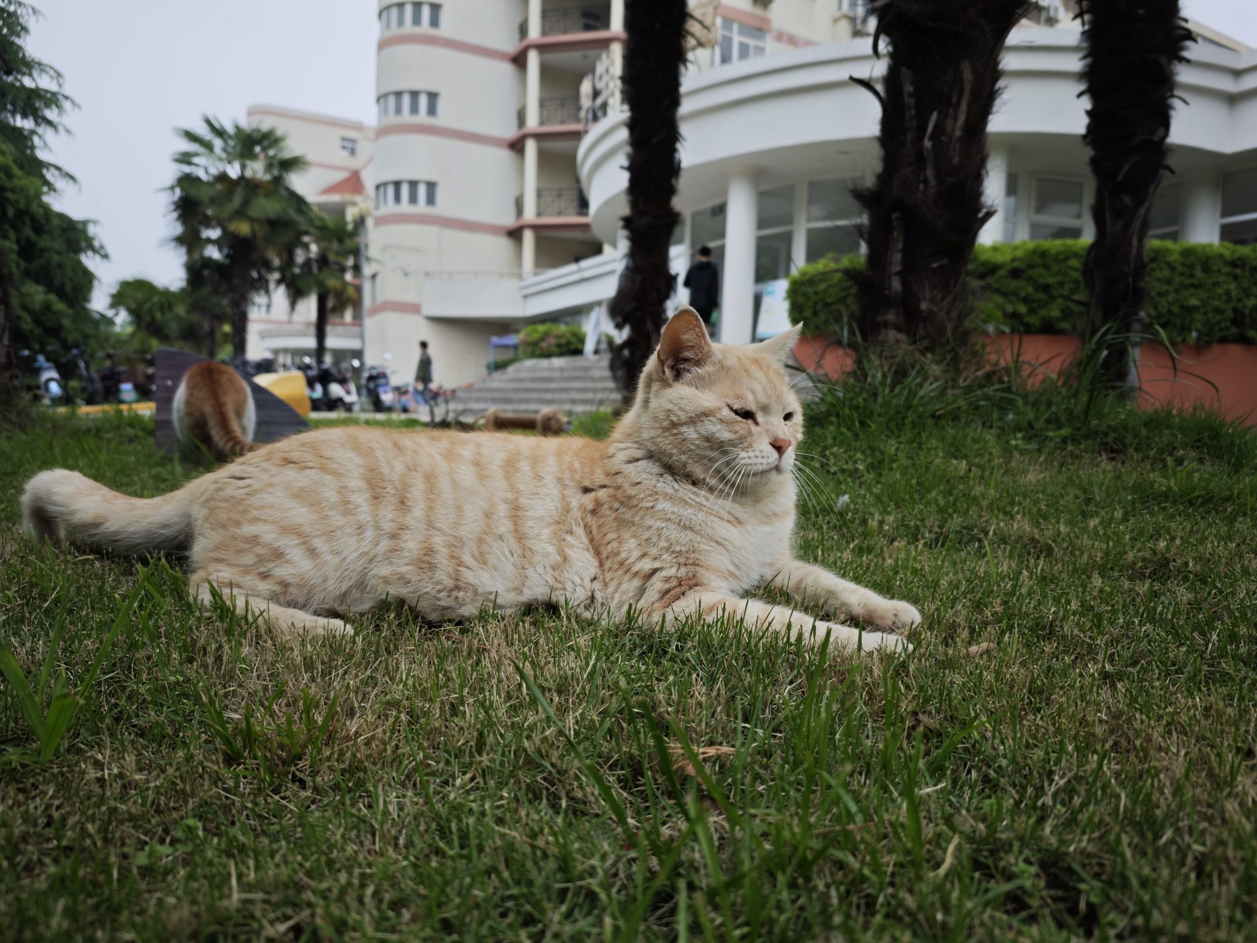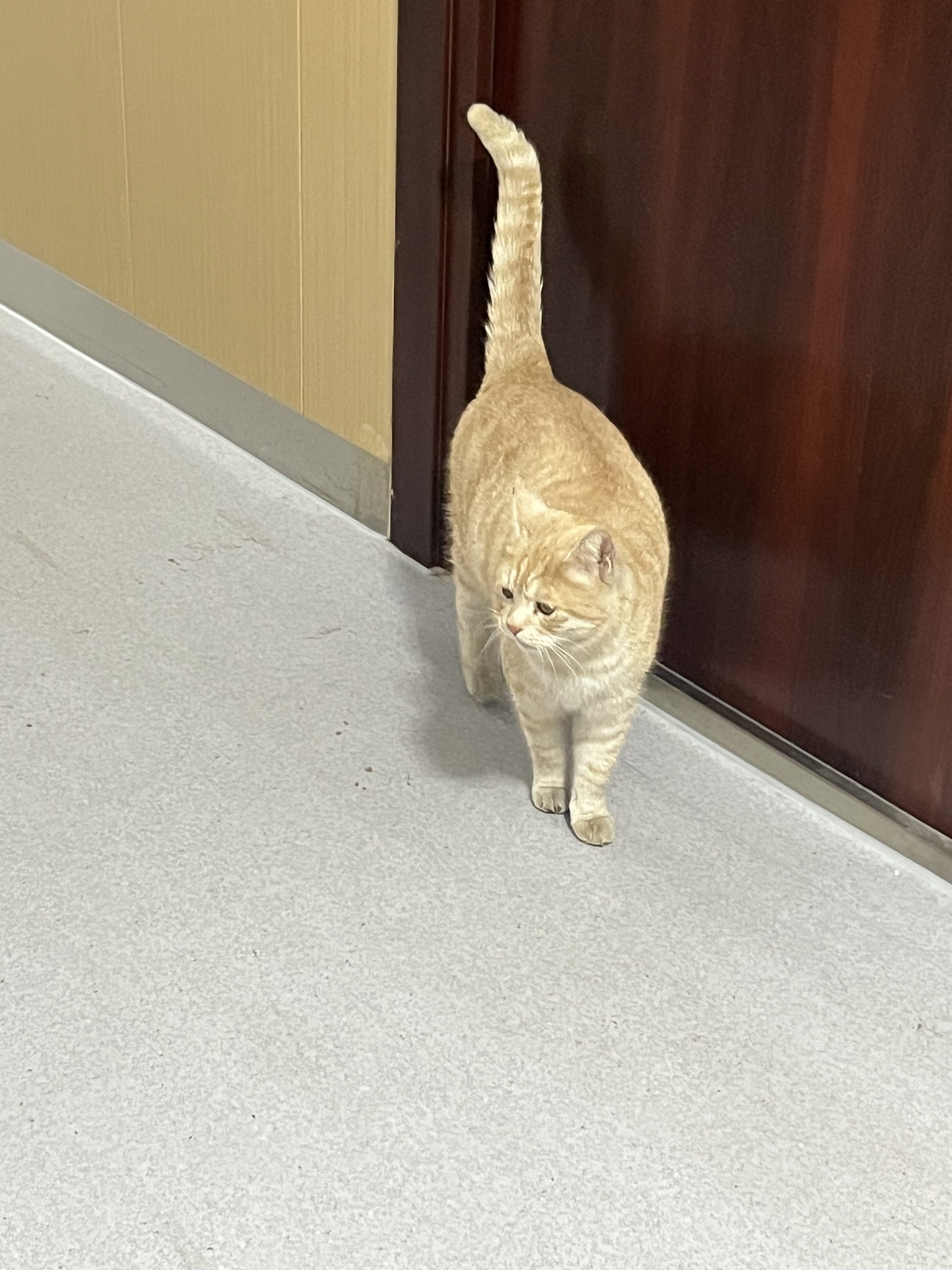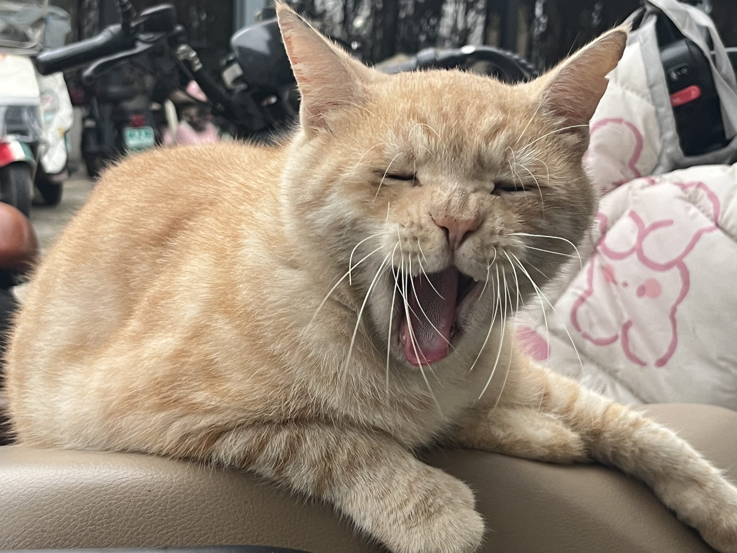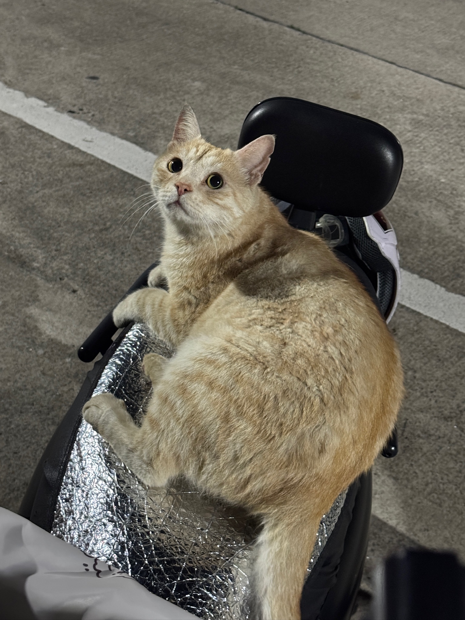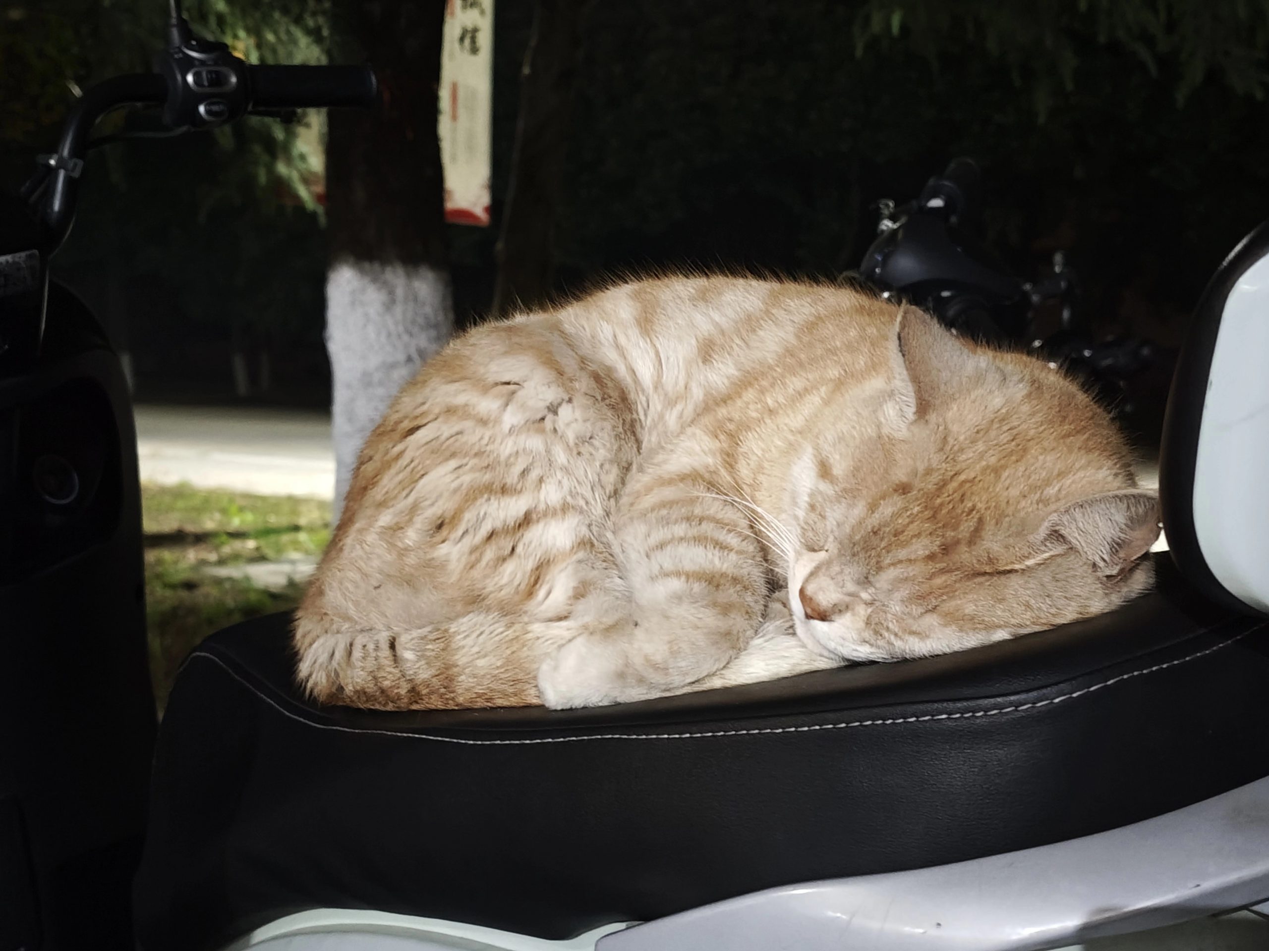 这是皮蛋,一只浅橘色、圆脸、嗓音沙哑的高冷猫猫。他常年混迹在19-21栋周边,喜欢趴台阶、霸占电动车,偶尔也会溜进宿舍蹭暖。
