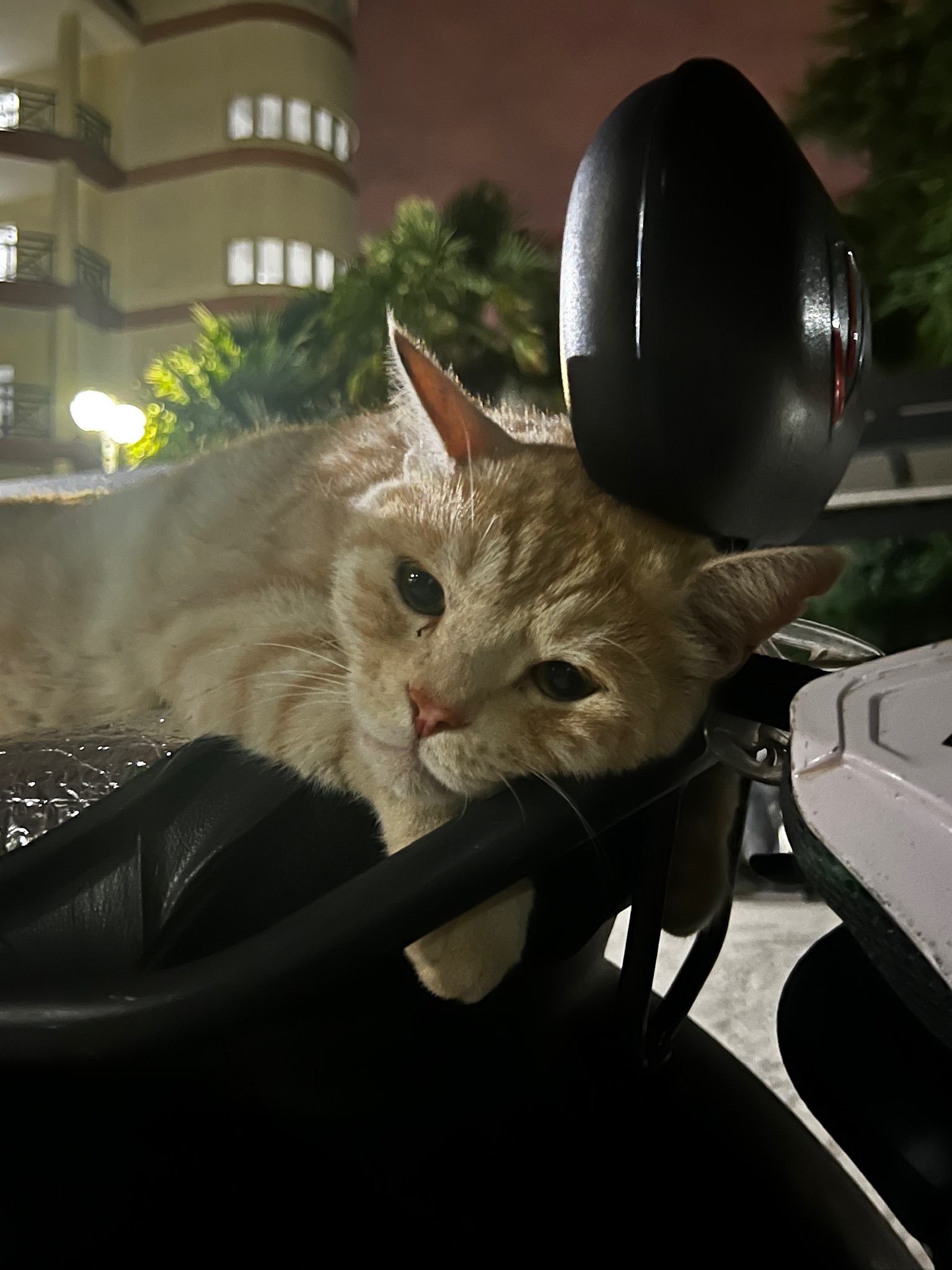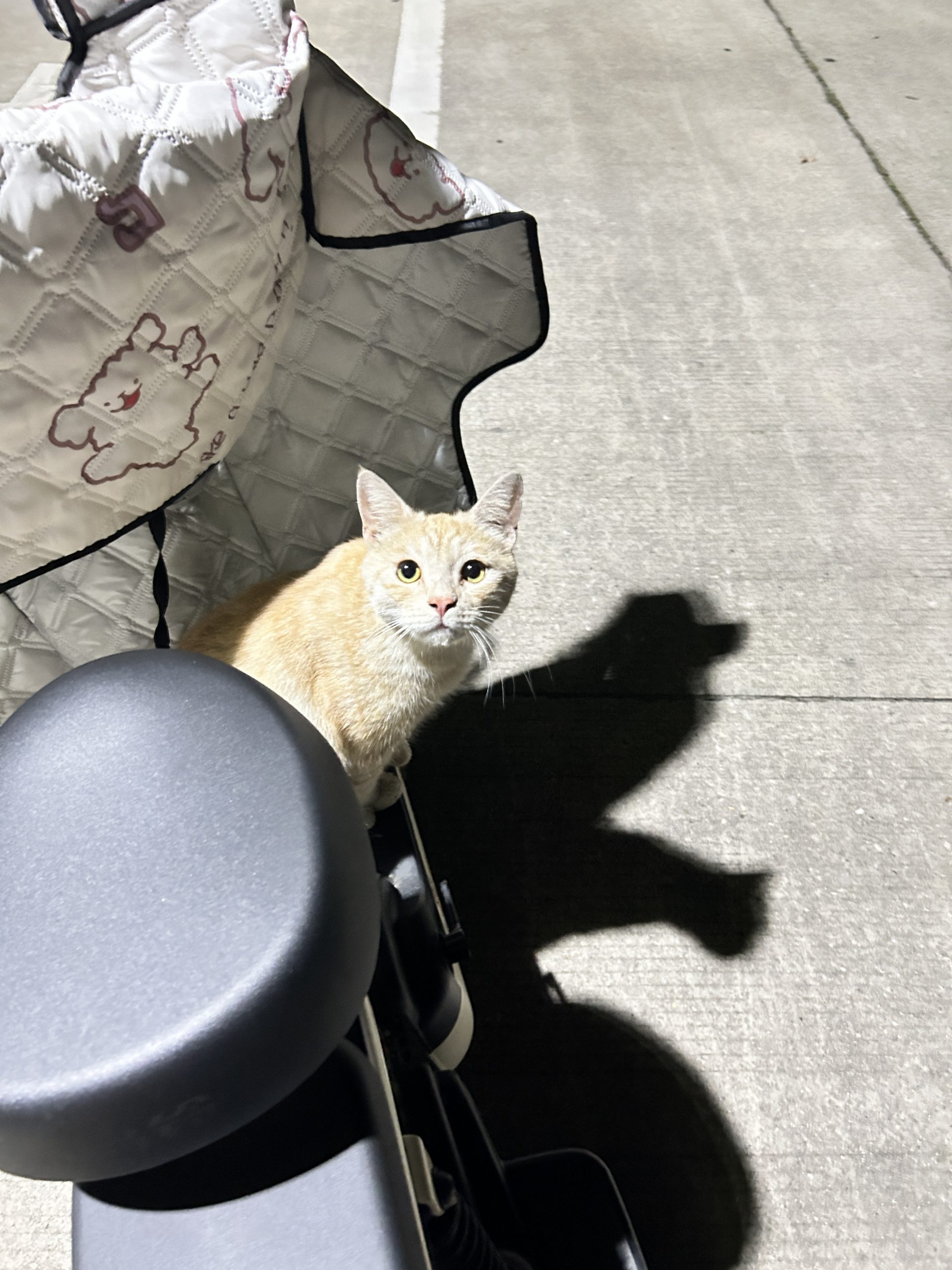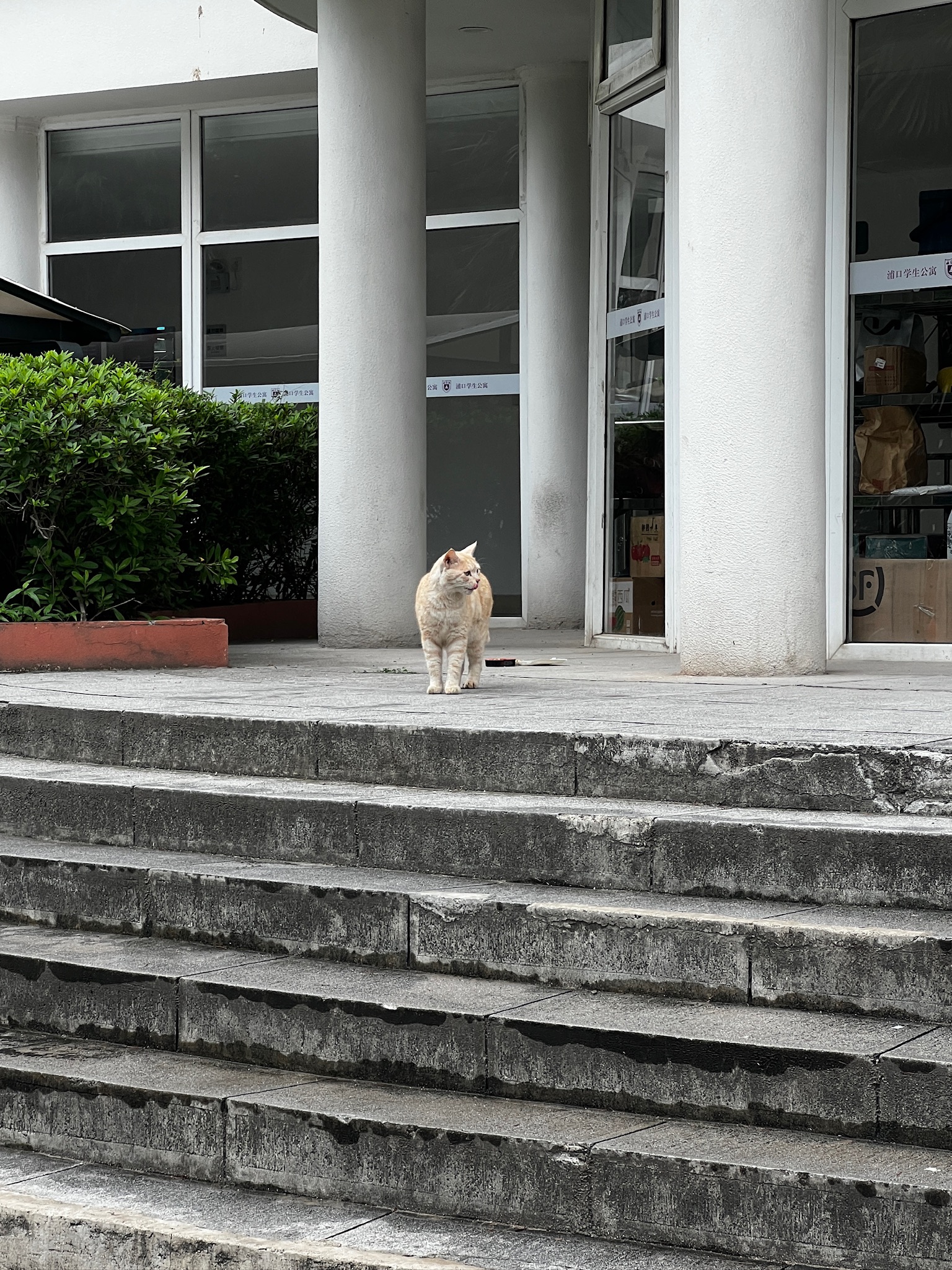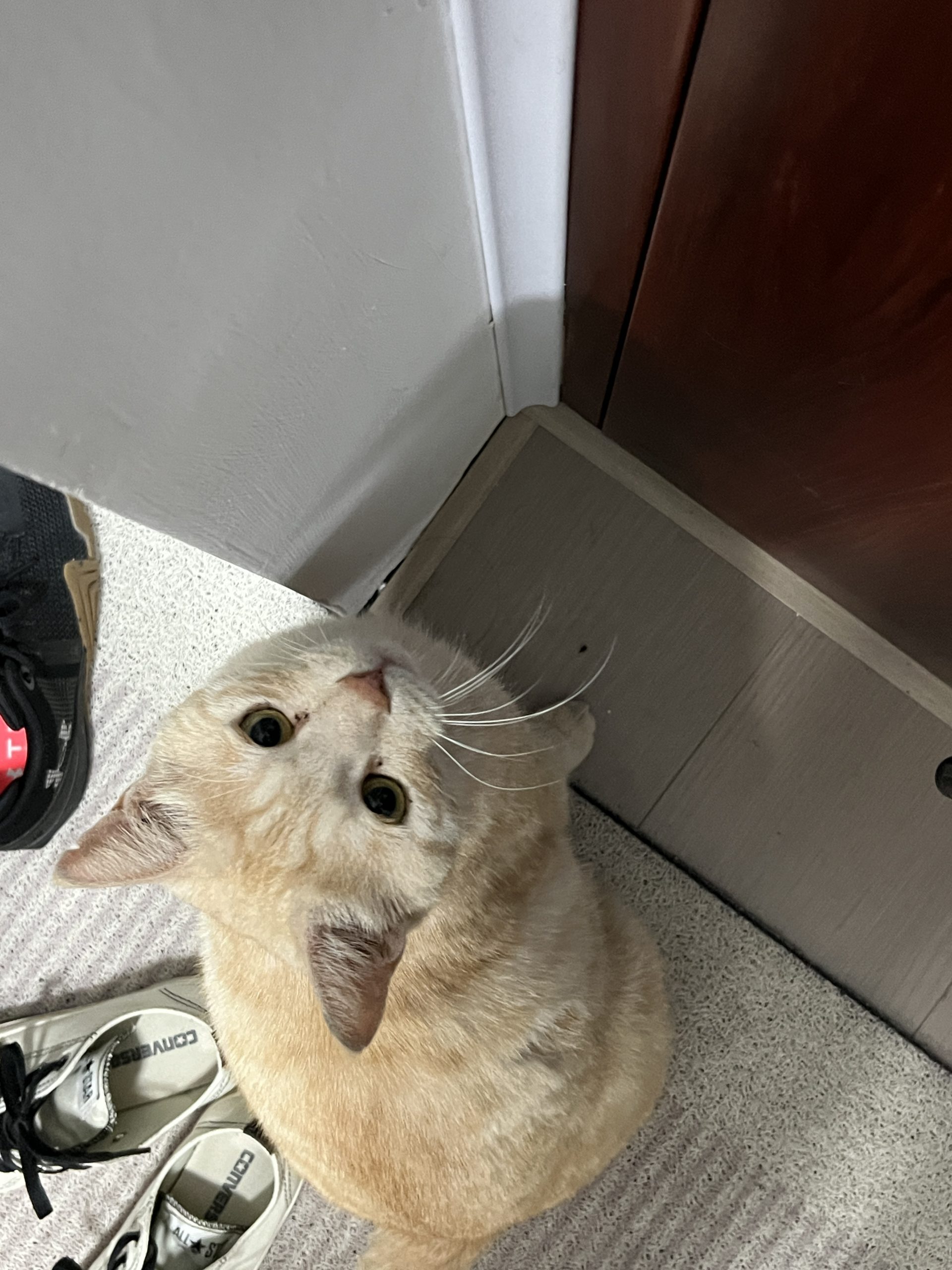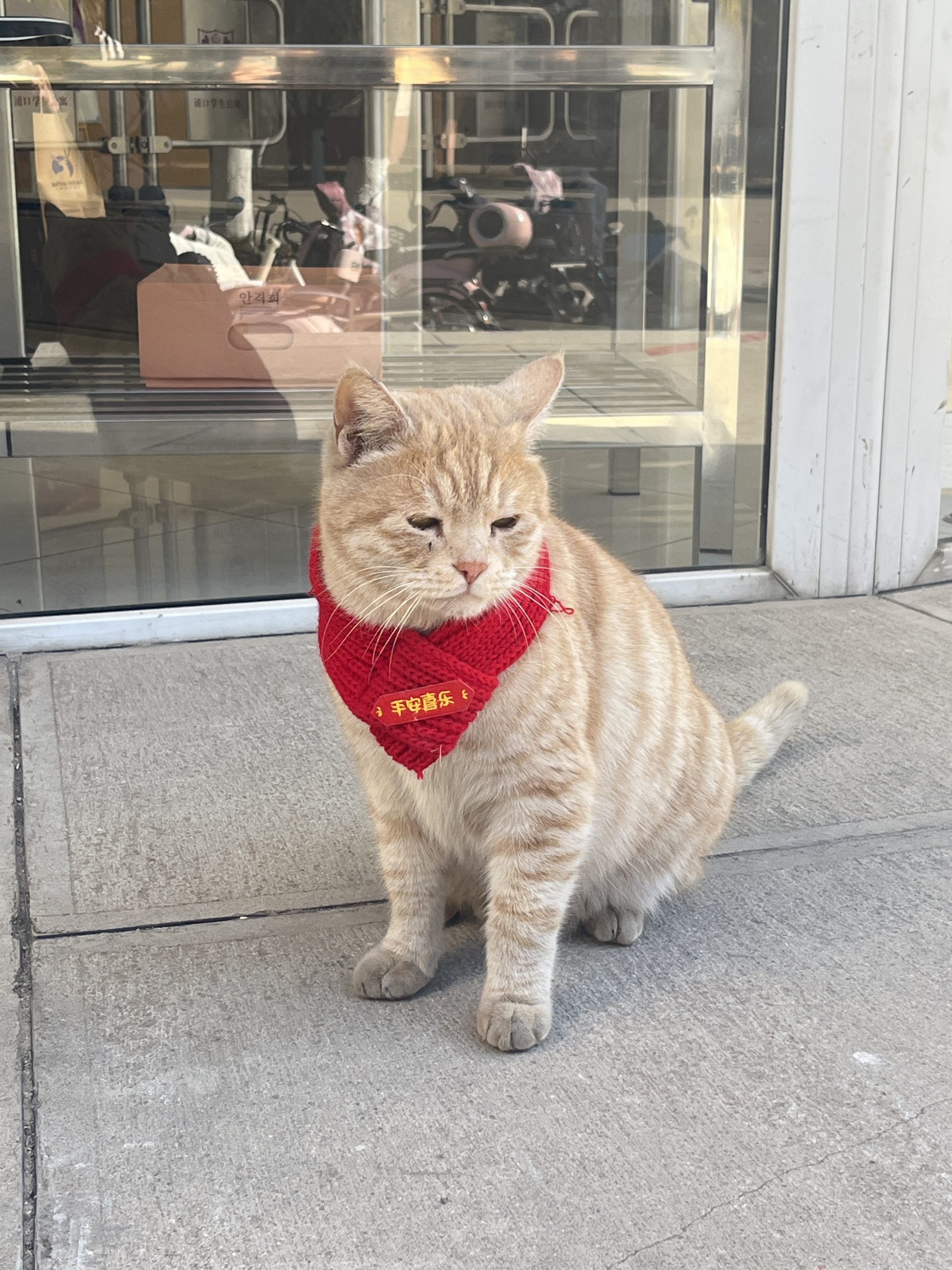 这是皮蛋,一只浅橘色、圆脸、嗓音沙哑的高冷猫猫。他常年混迹在19-21栋周边,喜欢趴台阶、霸占电动车,偶尔也会溜进宿舍蹭暖。