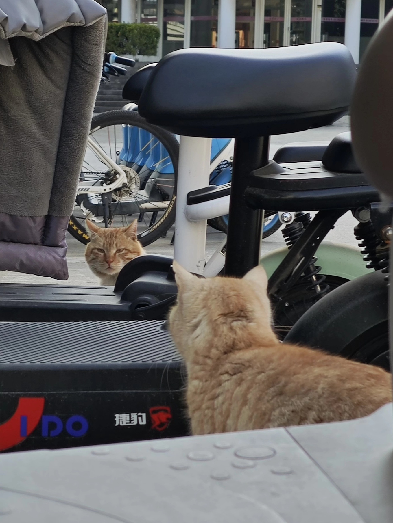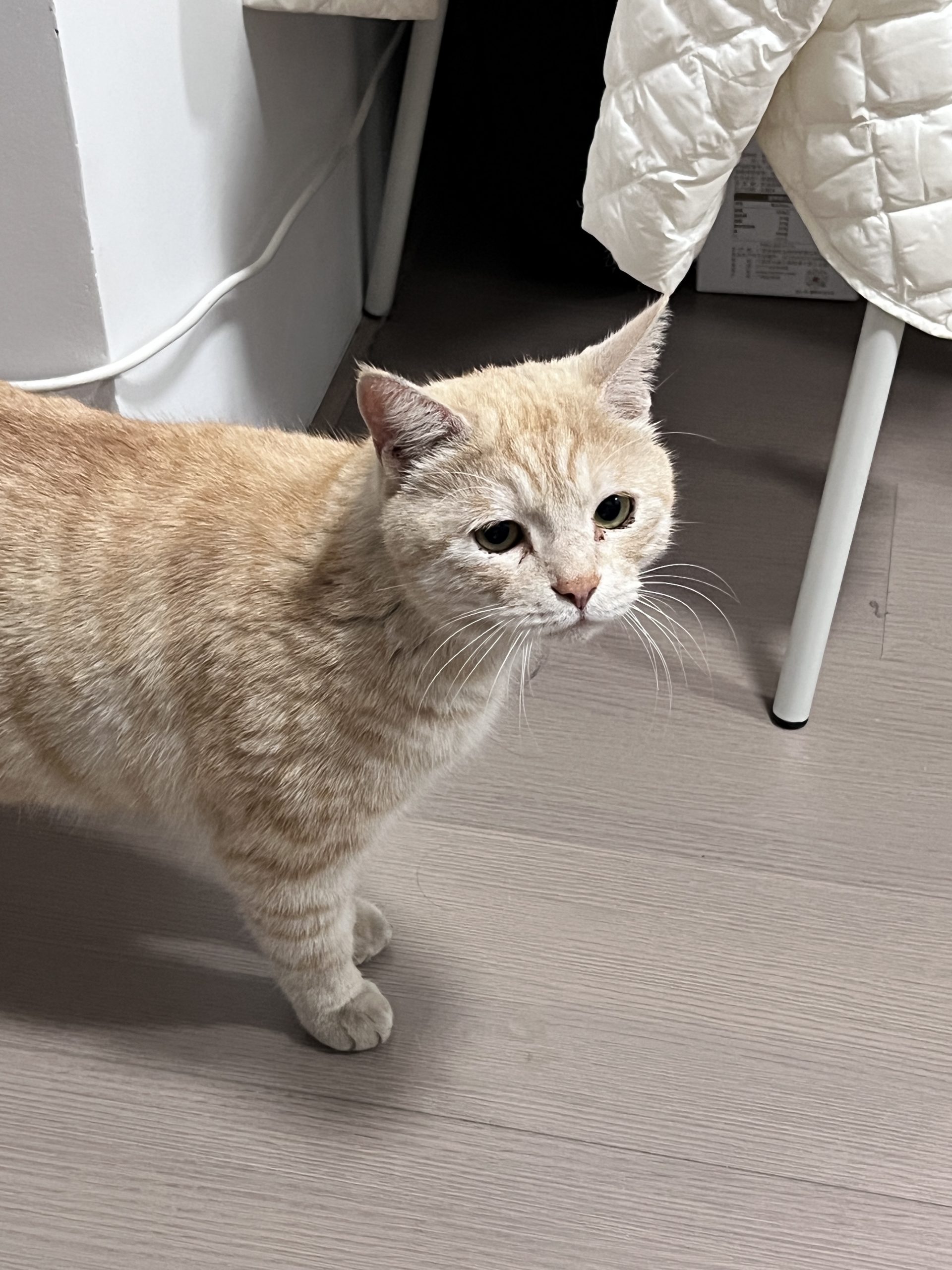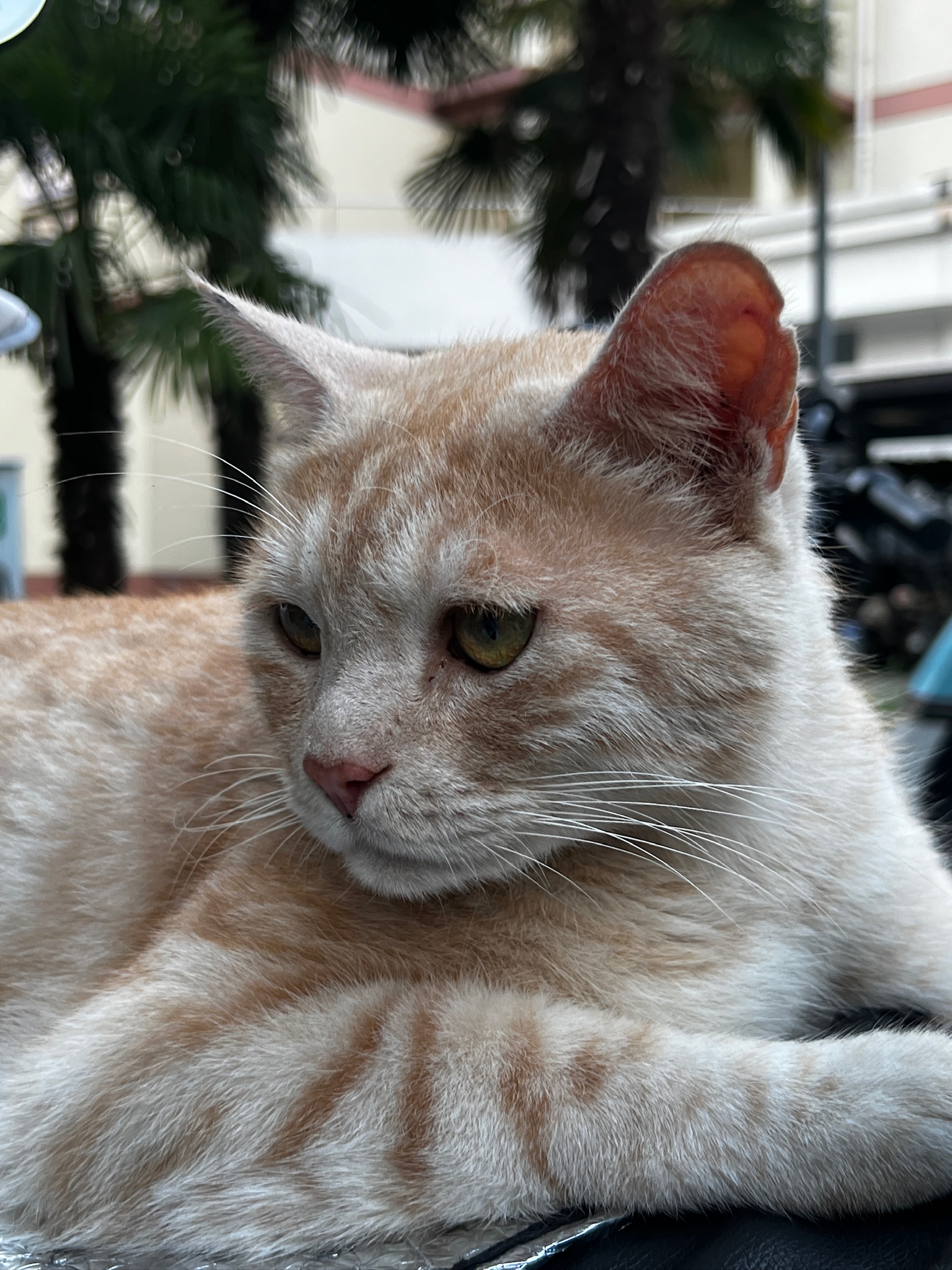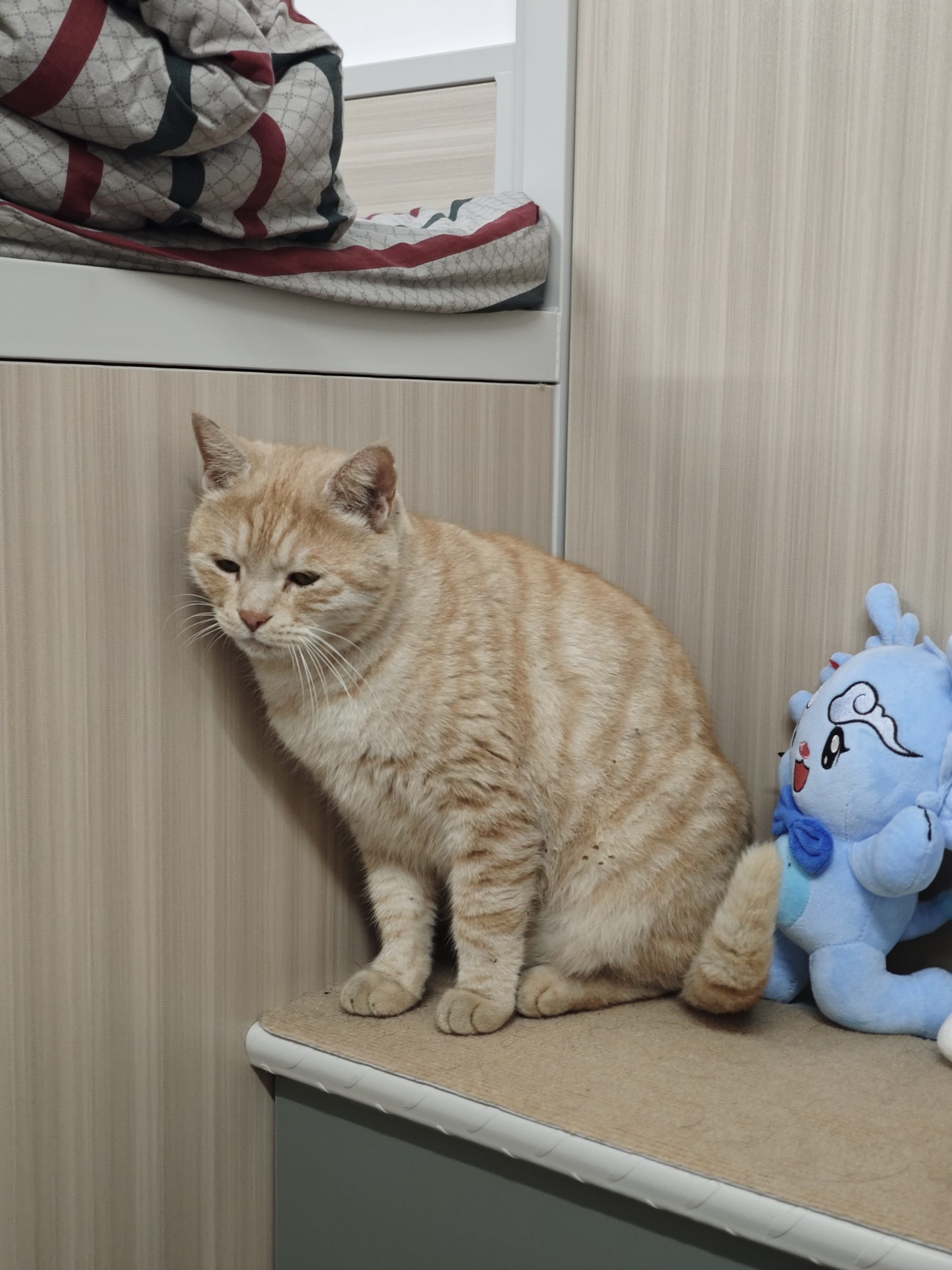 这是皮蛋,一只浅橘色、圆脸、嗓音沙哑的高冷猫猫。他常年混迹在19-21栋周边,喜欢趴台阶、霸占电动车,偶尔也会溜进宿舍蹭暖。