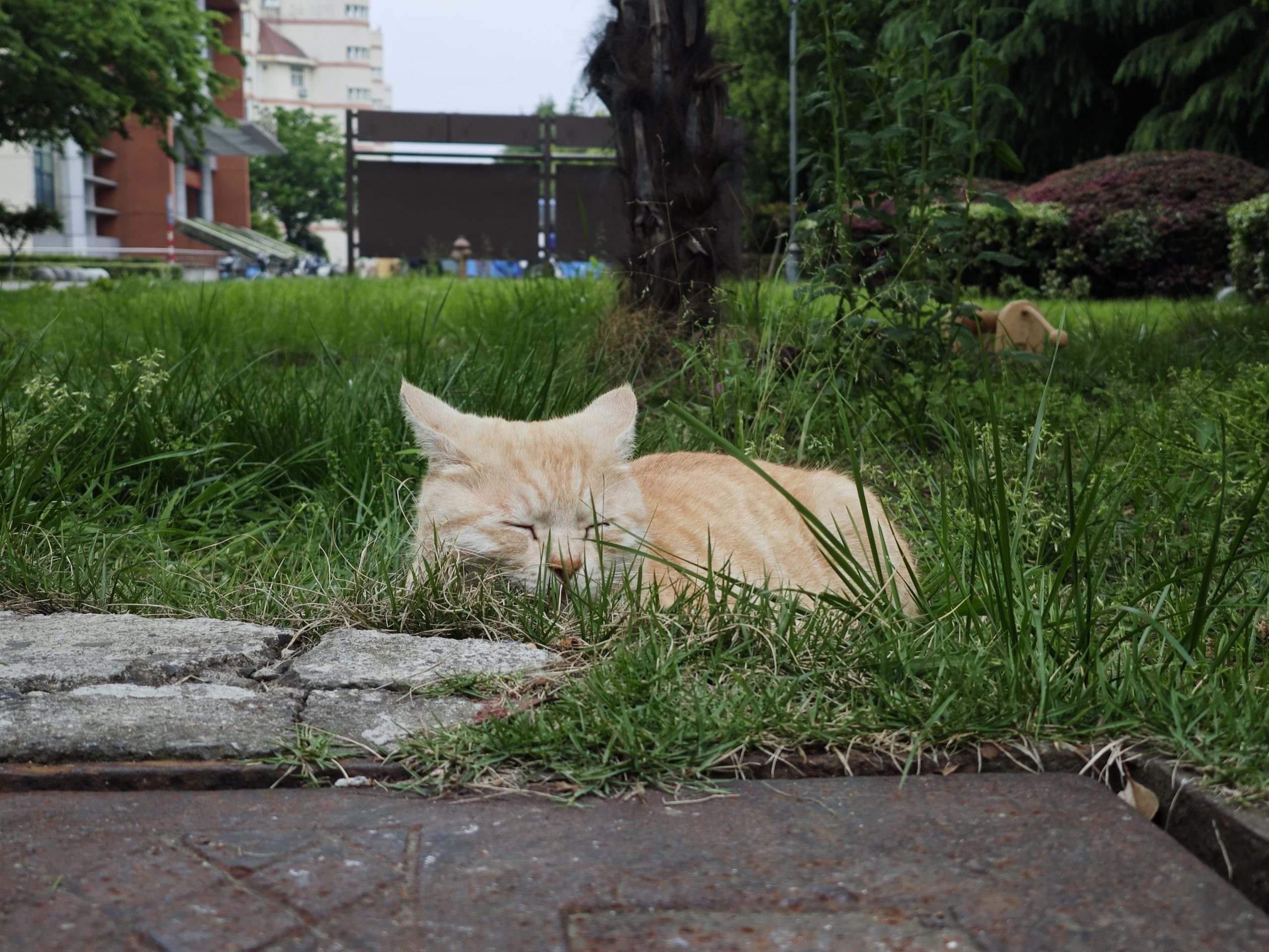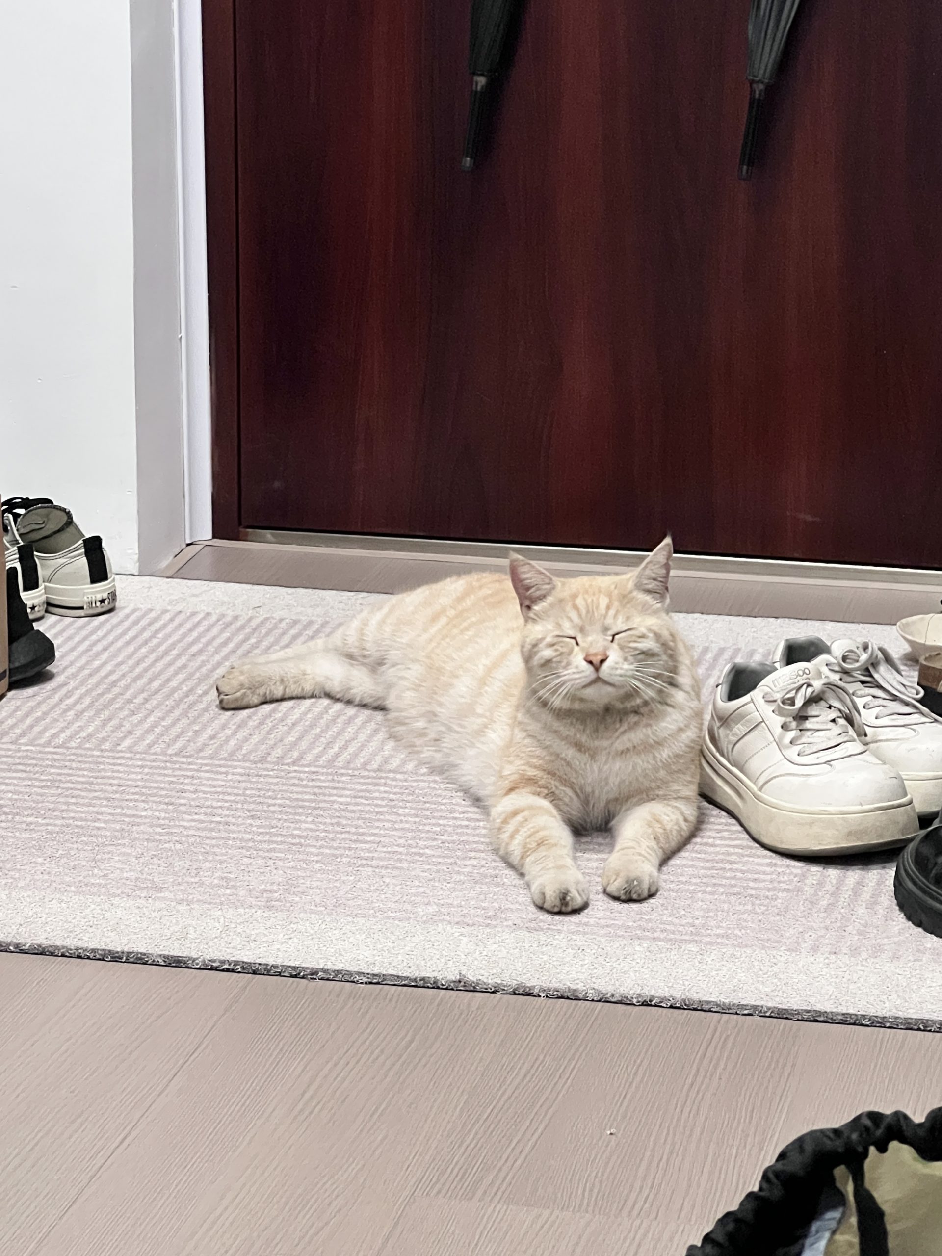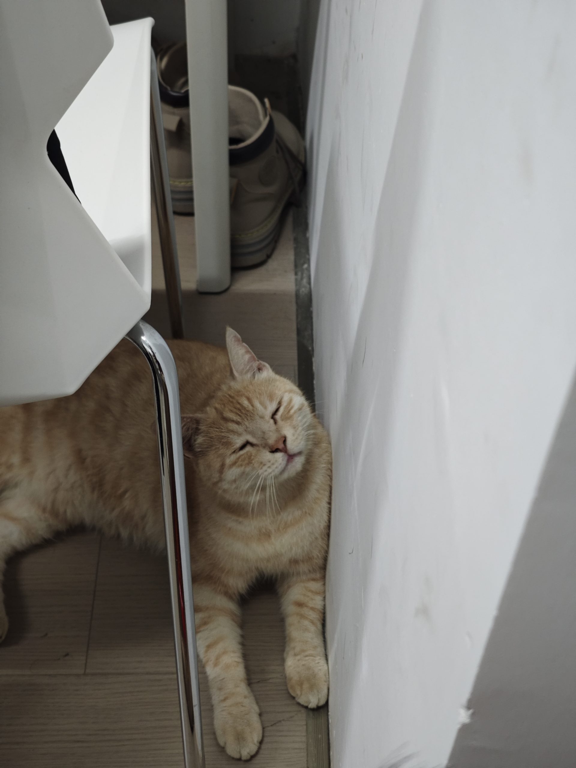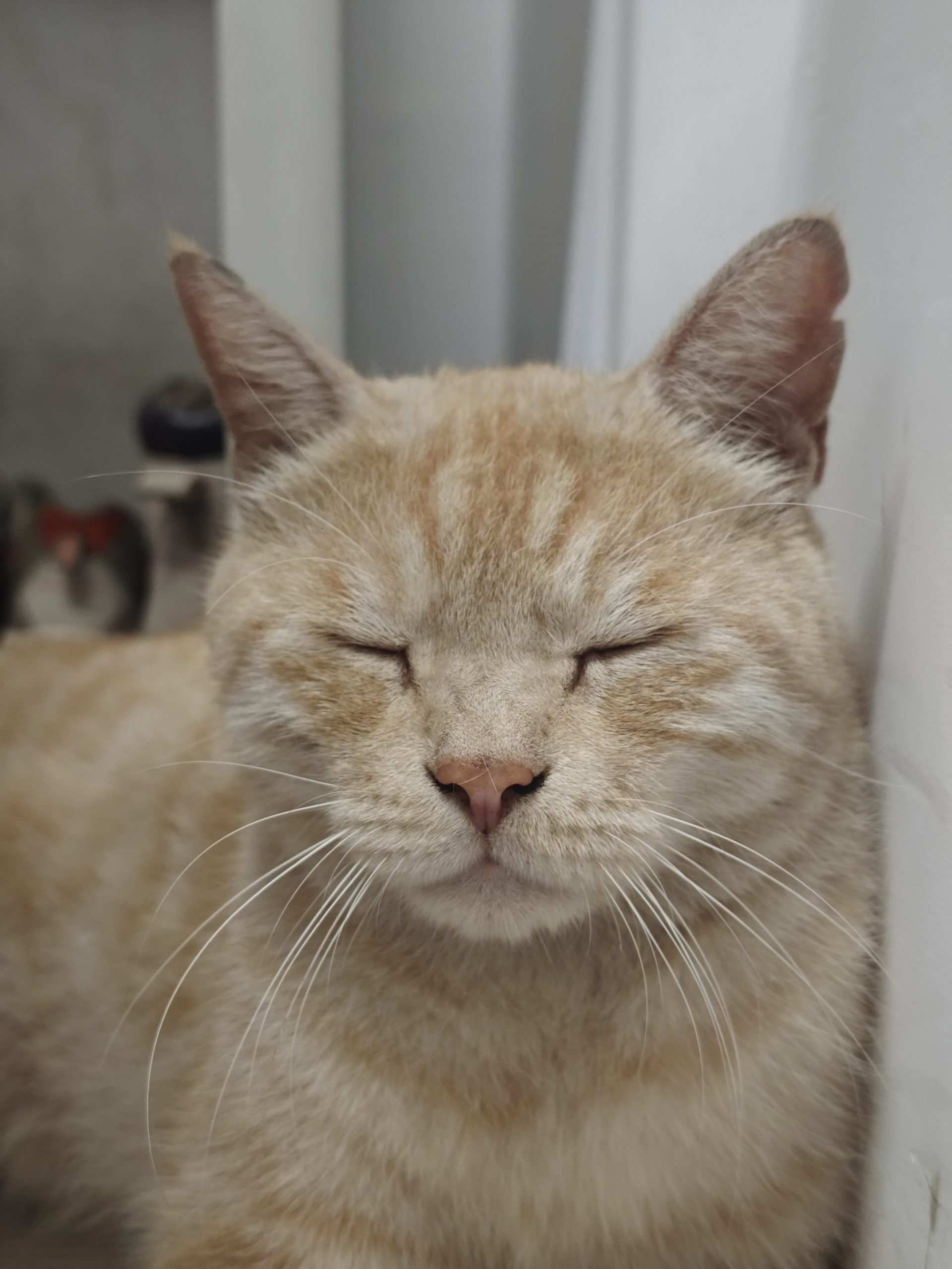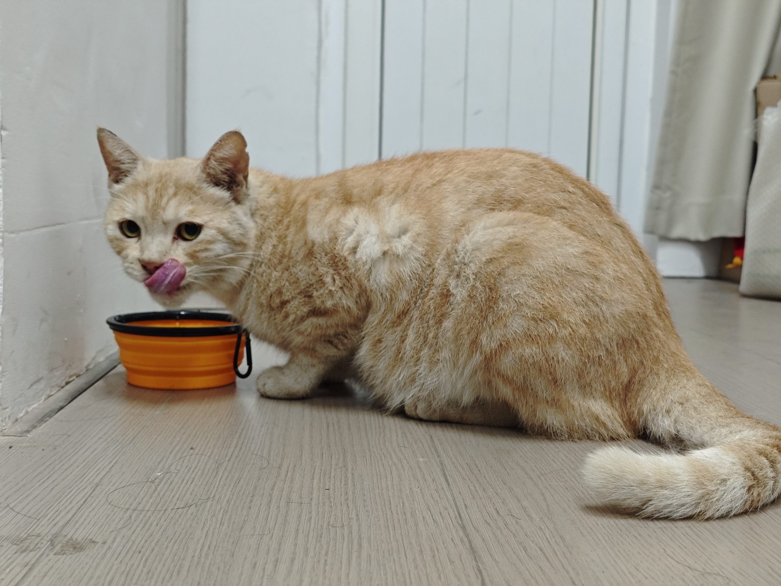 这是皮蛋,一只浅橘色、圆脸、嗓音沙哑的高冷猫猫。他常年混迹在19-21栋周边,喜欢趴台阶、霸占电动车,偶尔也会溜进宿舍蹭暖。