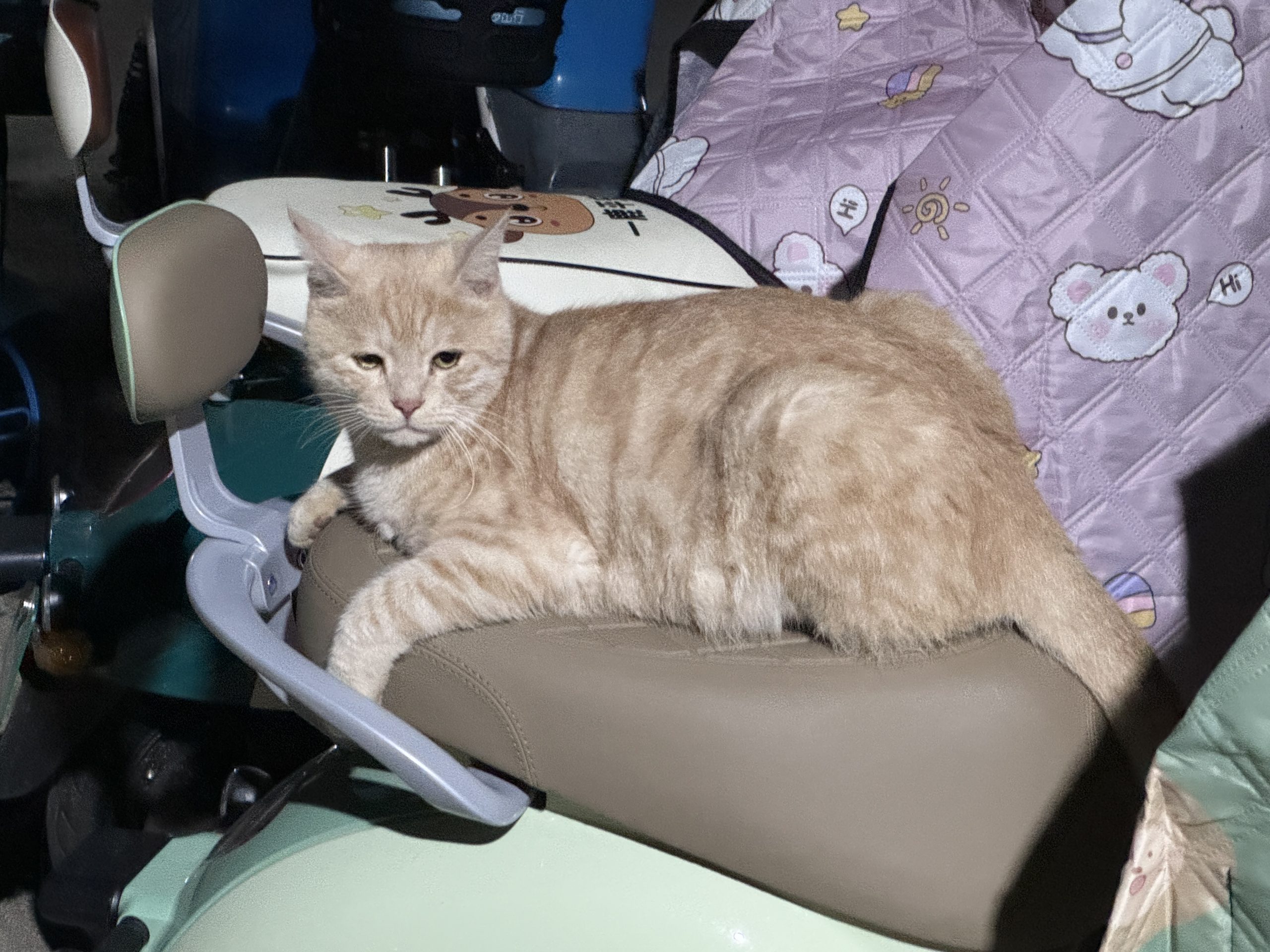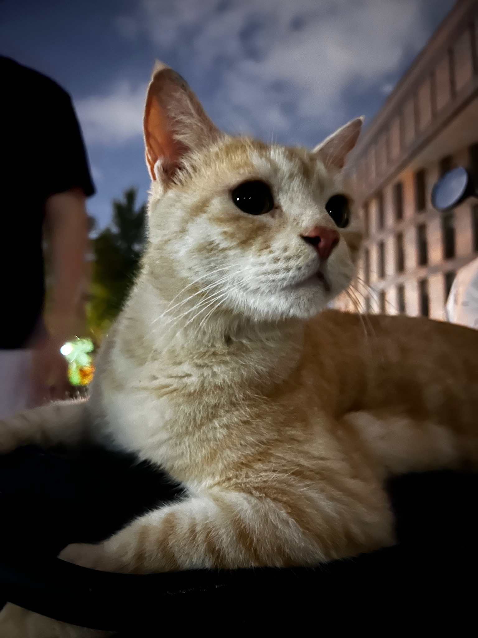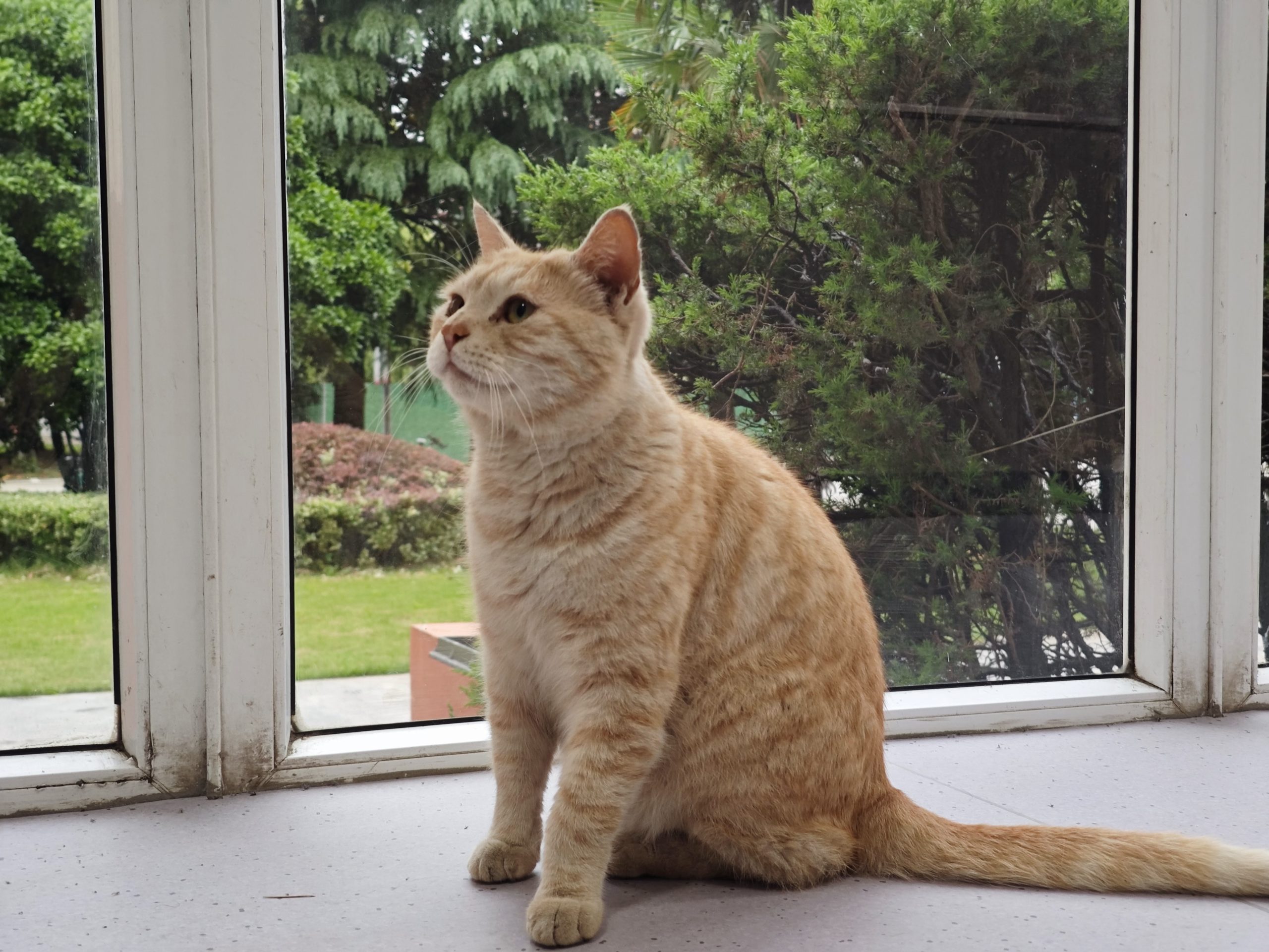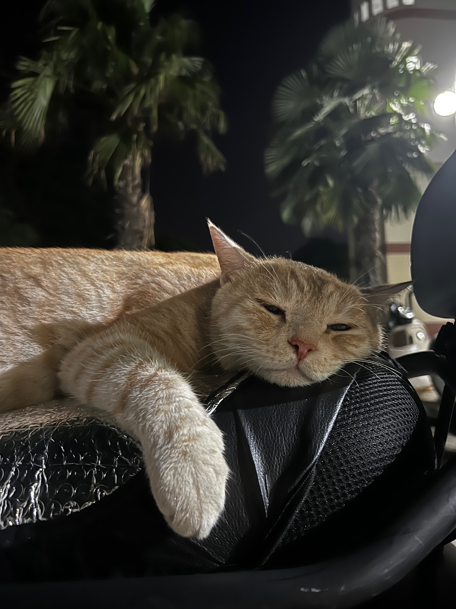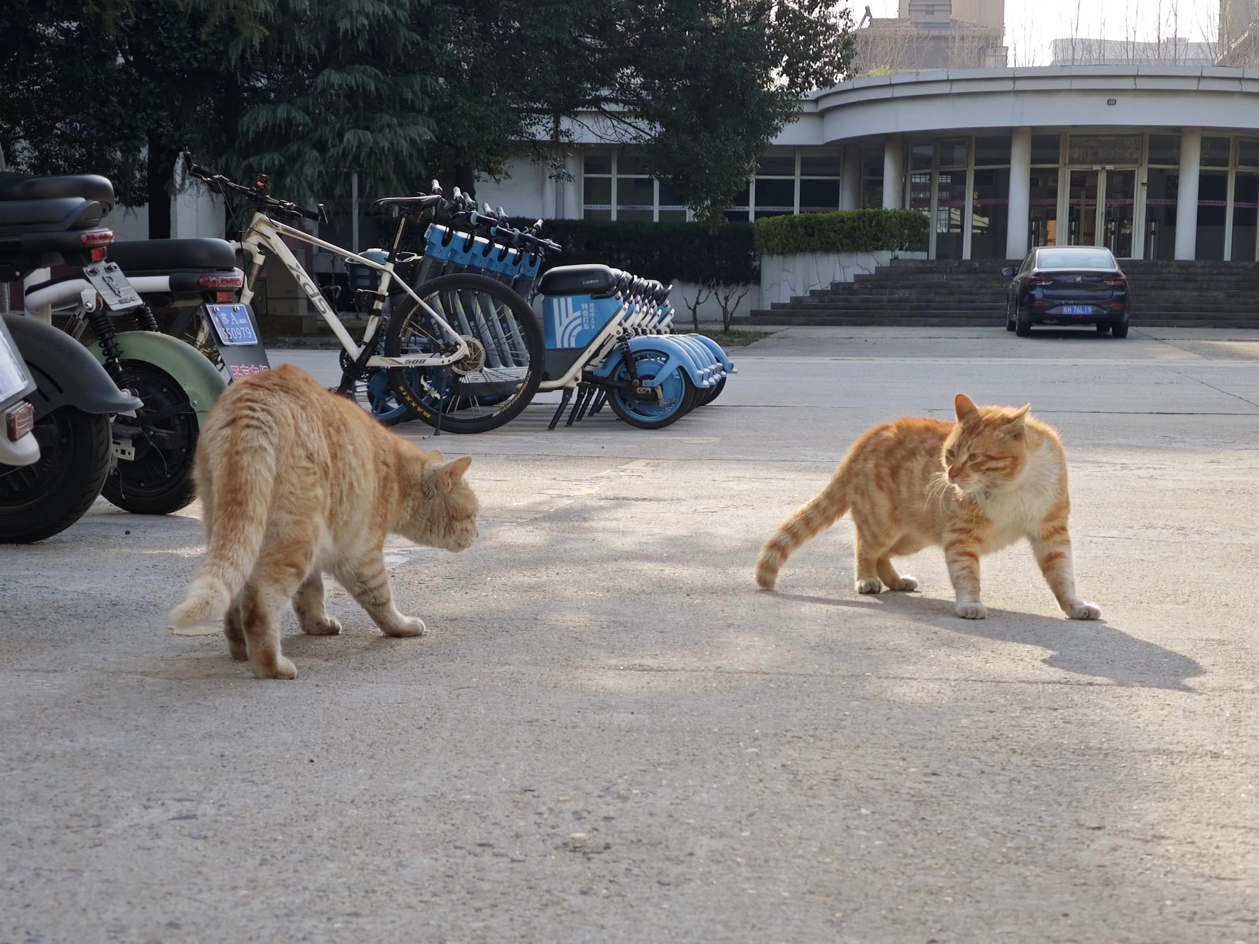 这是皮蛋,一只浅橘色、圆脸、嗓音沙哑的高冷猫猫。他常年混迹在19-21栋周边,喜欢趴台阶、霸占电动车,偶尔也会溜进宿舍蹭暖。