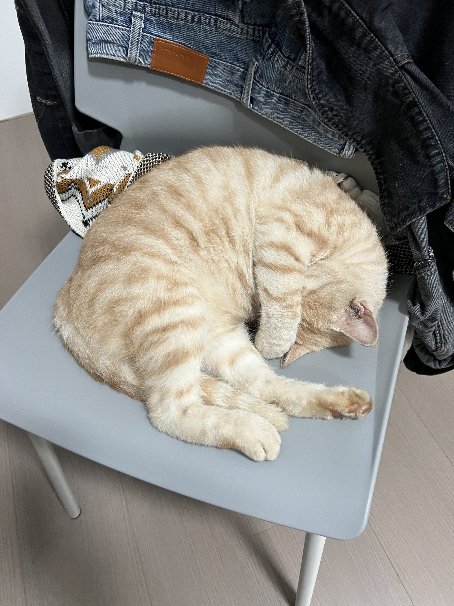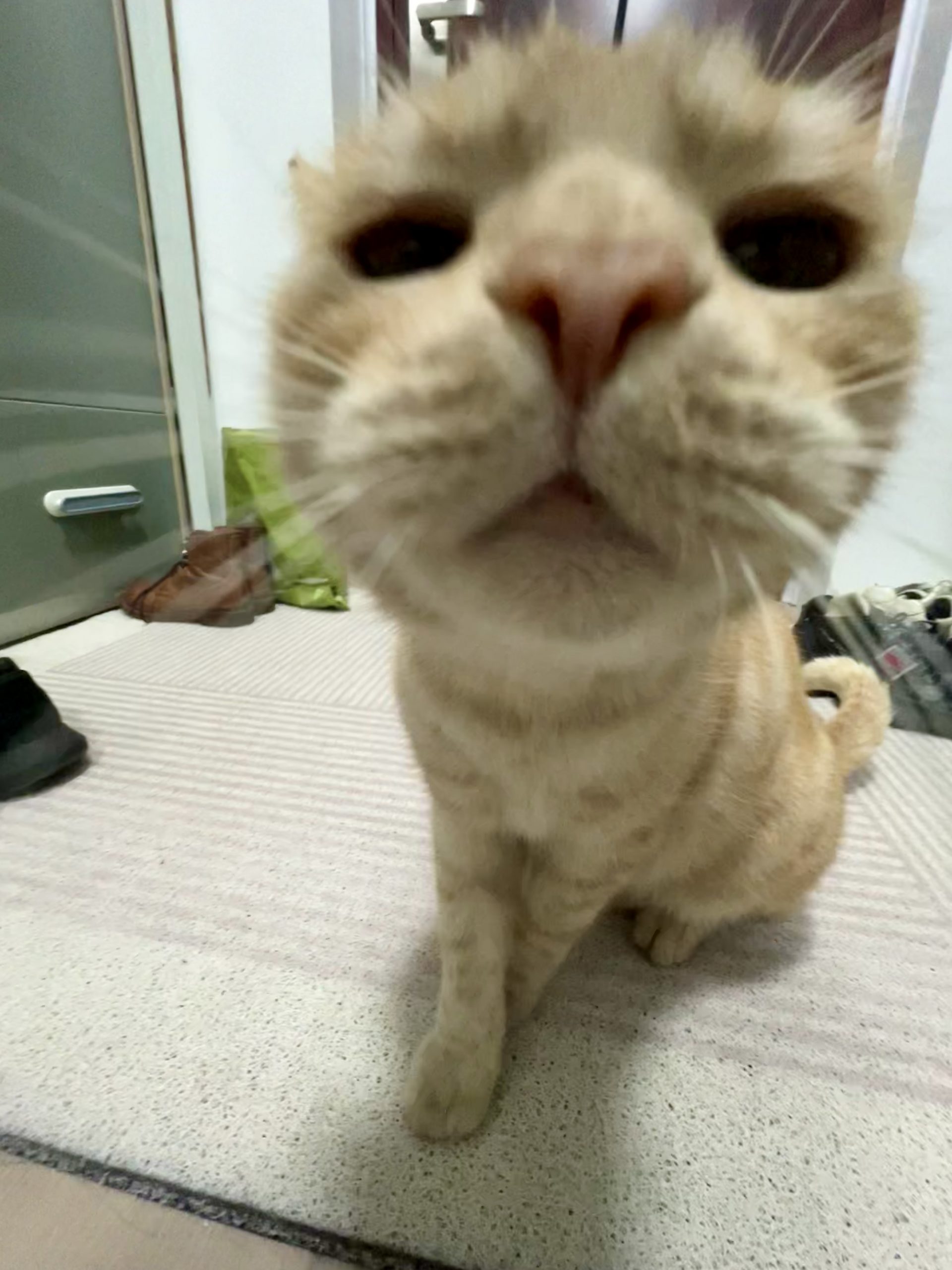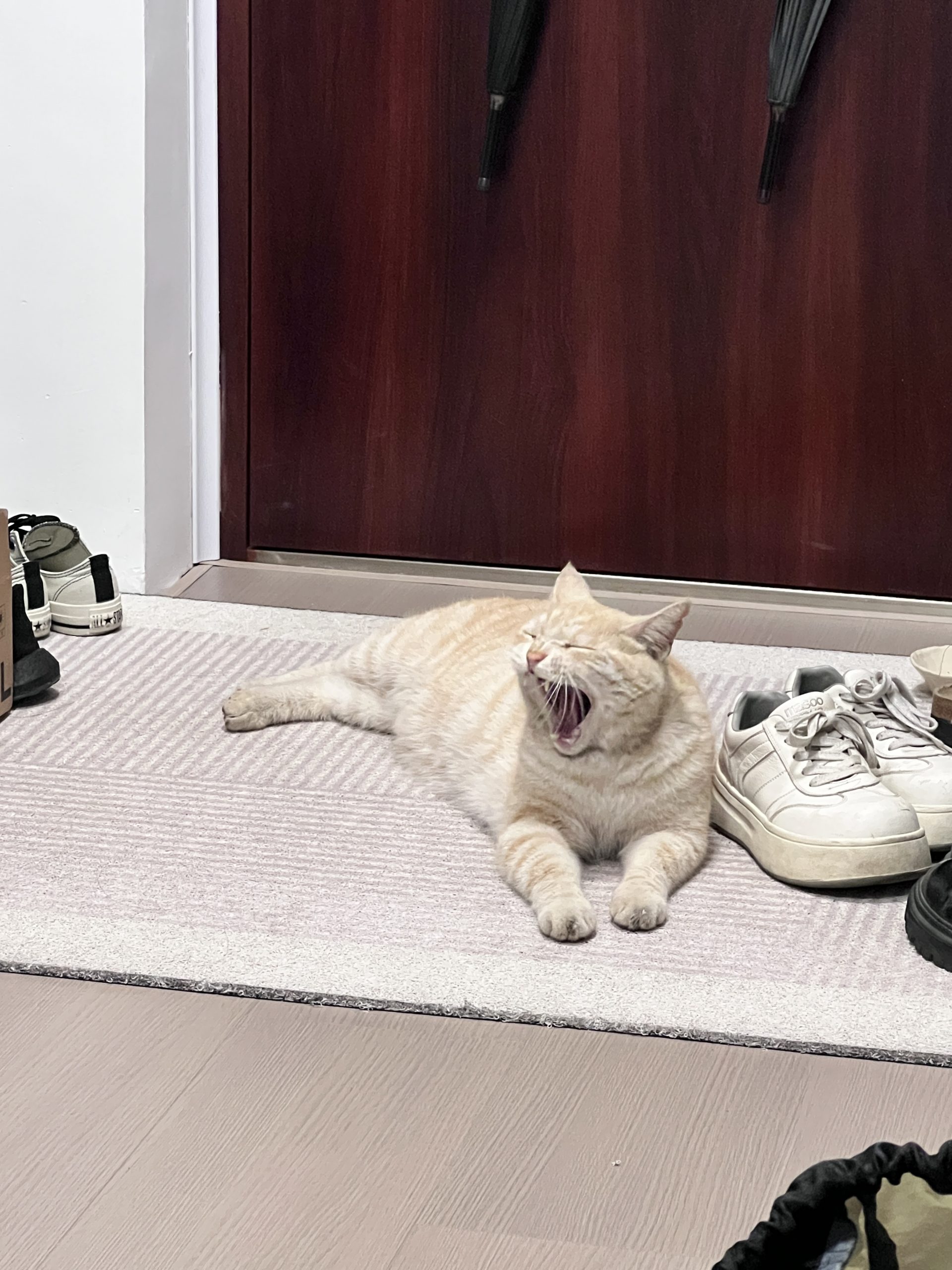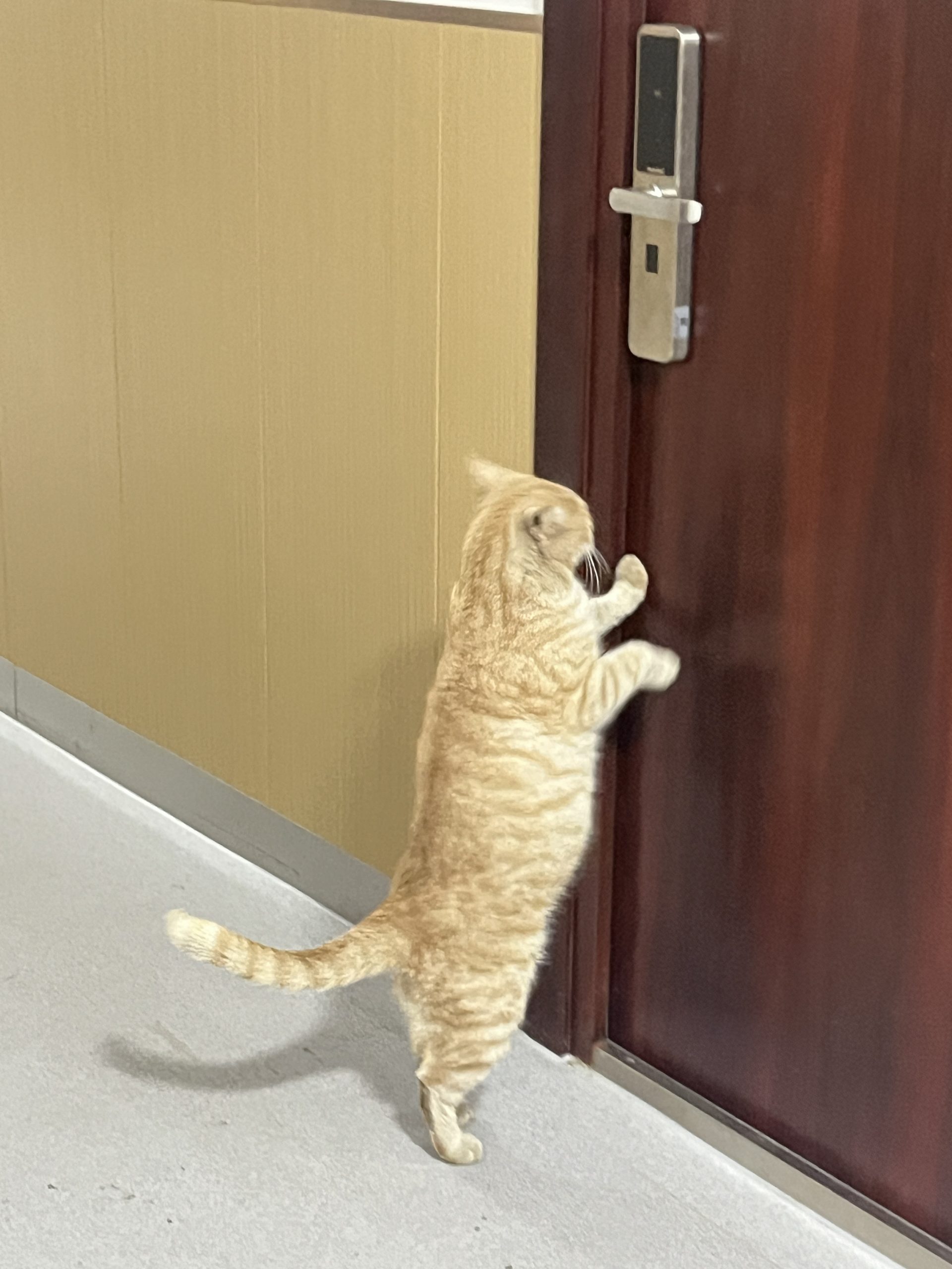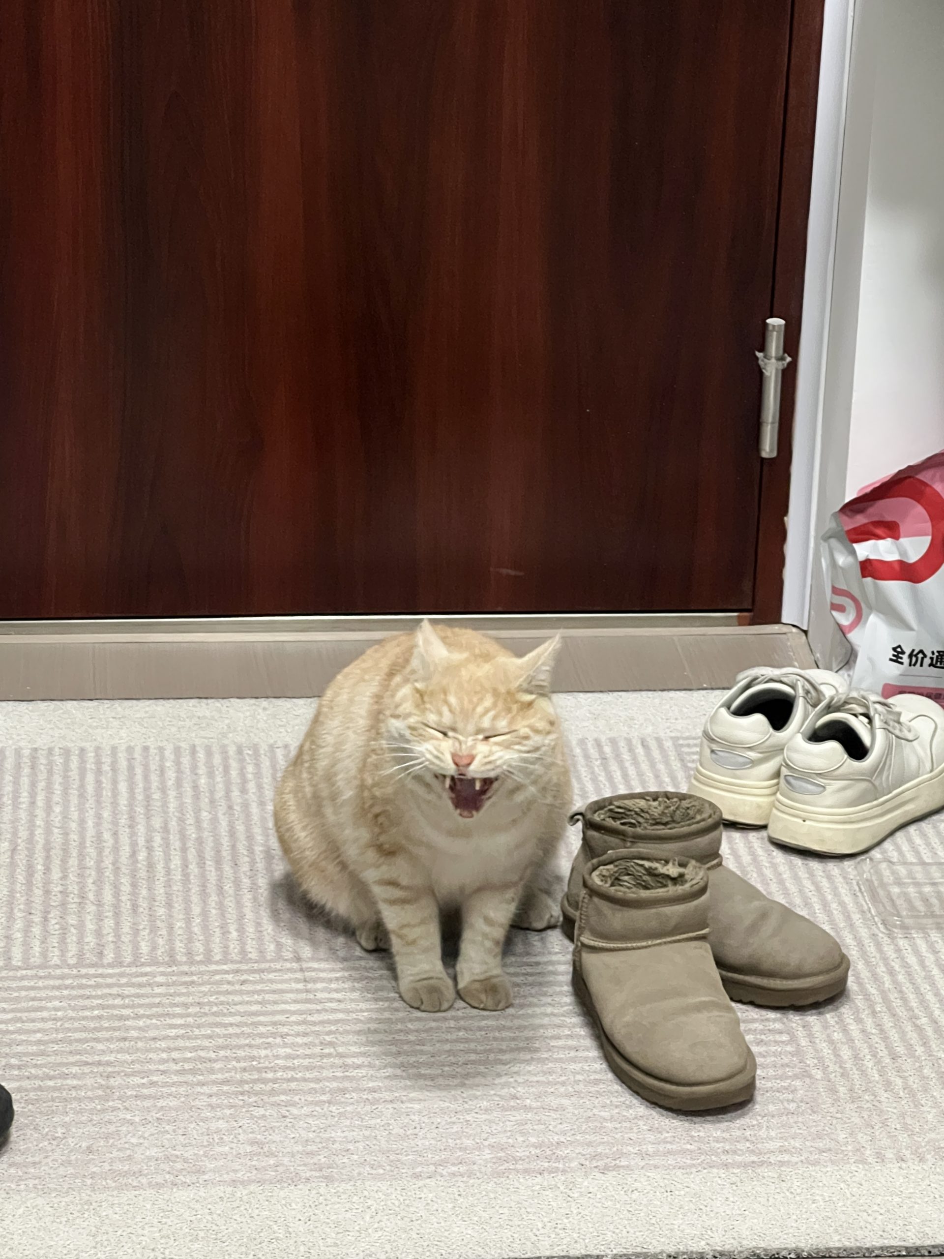 这是皮蛋,一只浅橘色、圆脸、嗓音沙哑的高冷猫猫。他常年混迹在19-21栋周边,喜欢趴台阶、霸占电动车,偶尔也会溜进宿舍蹭暖。