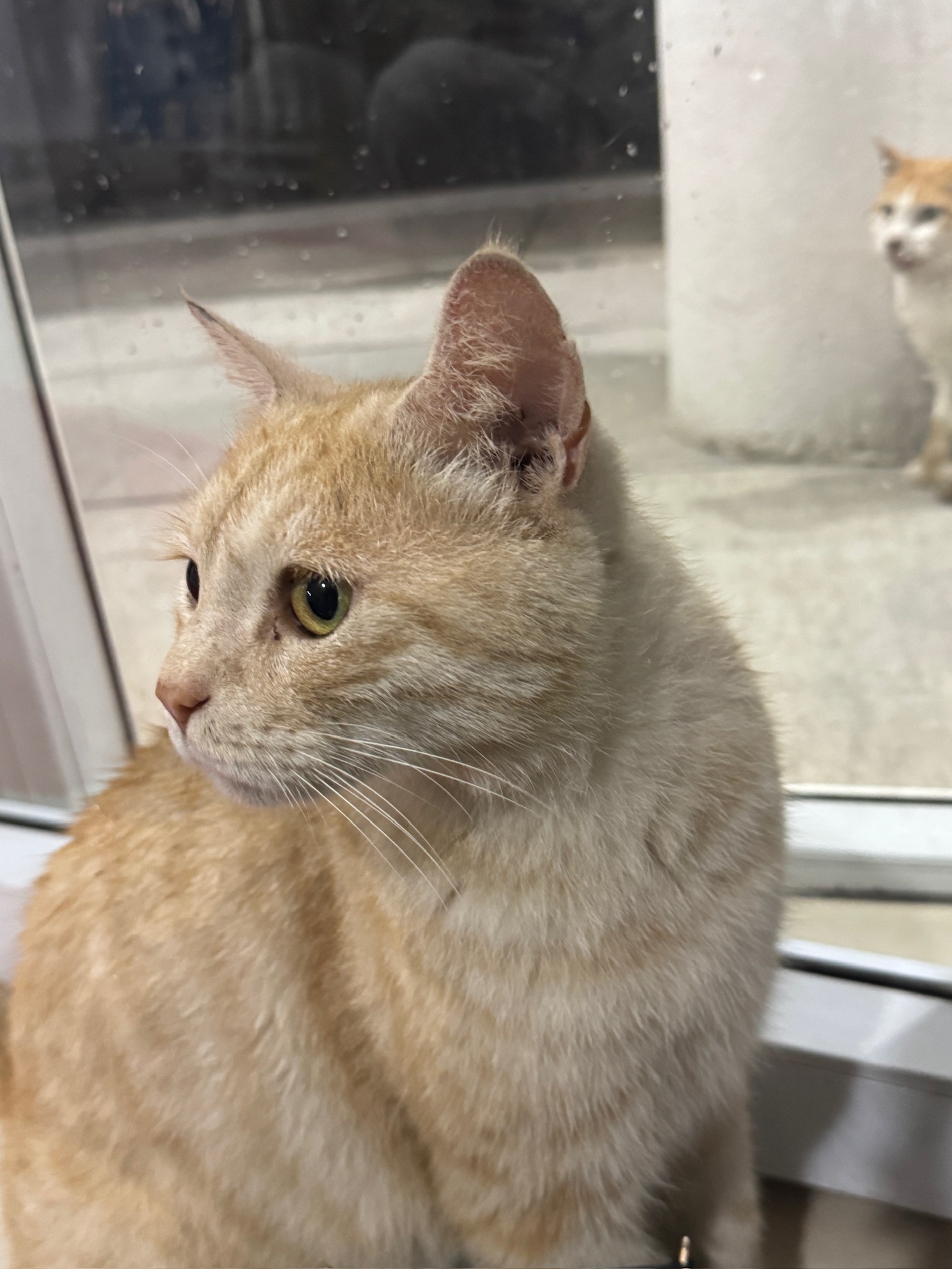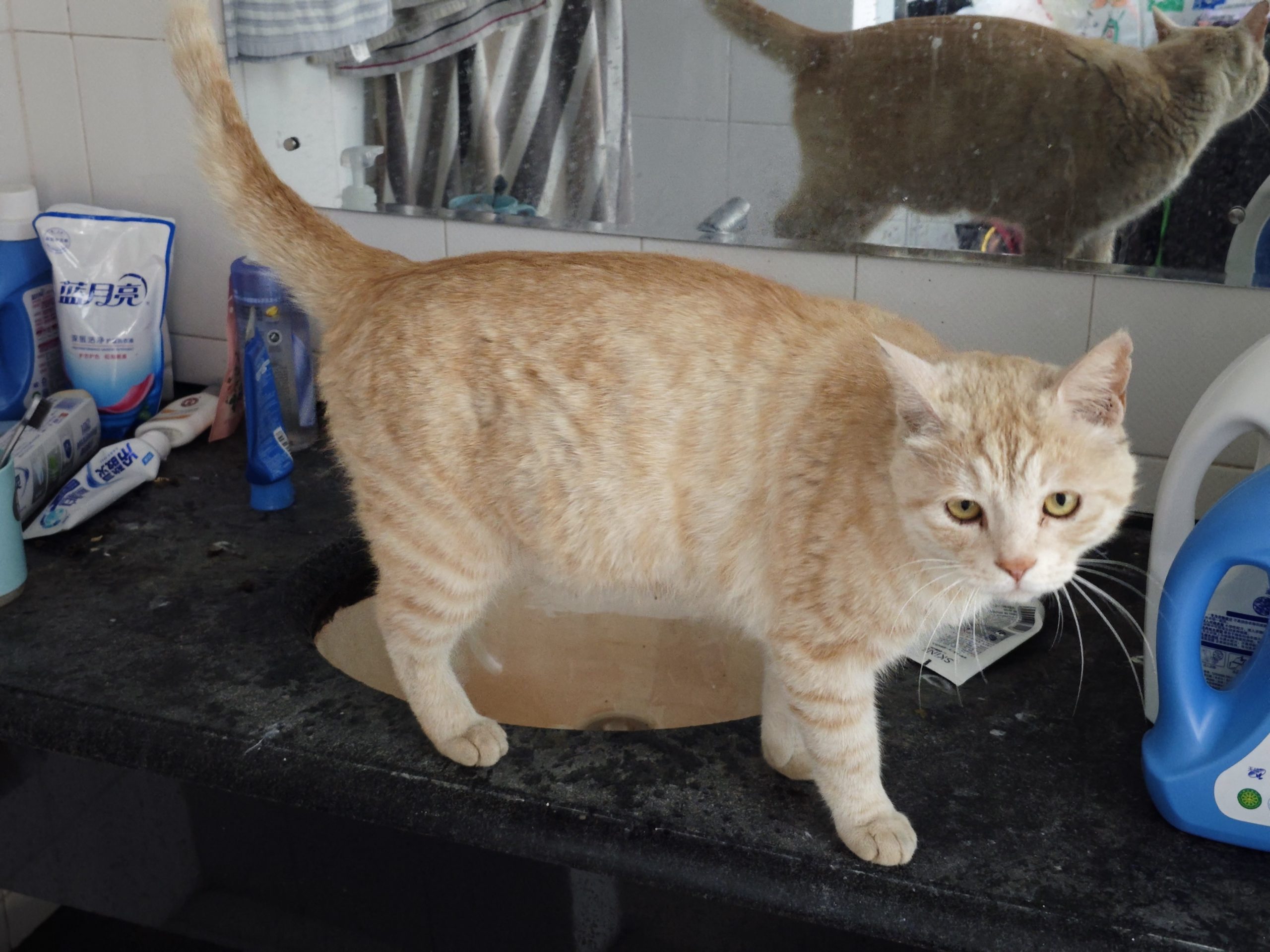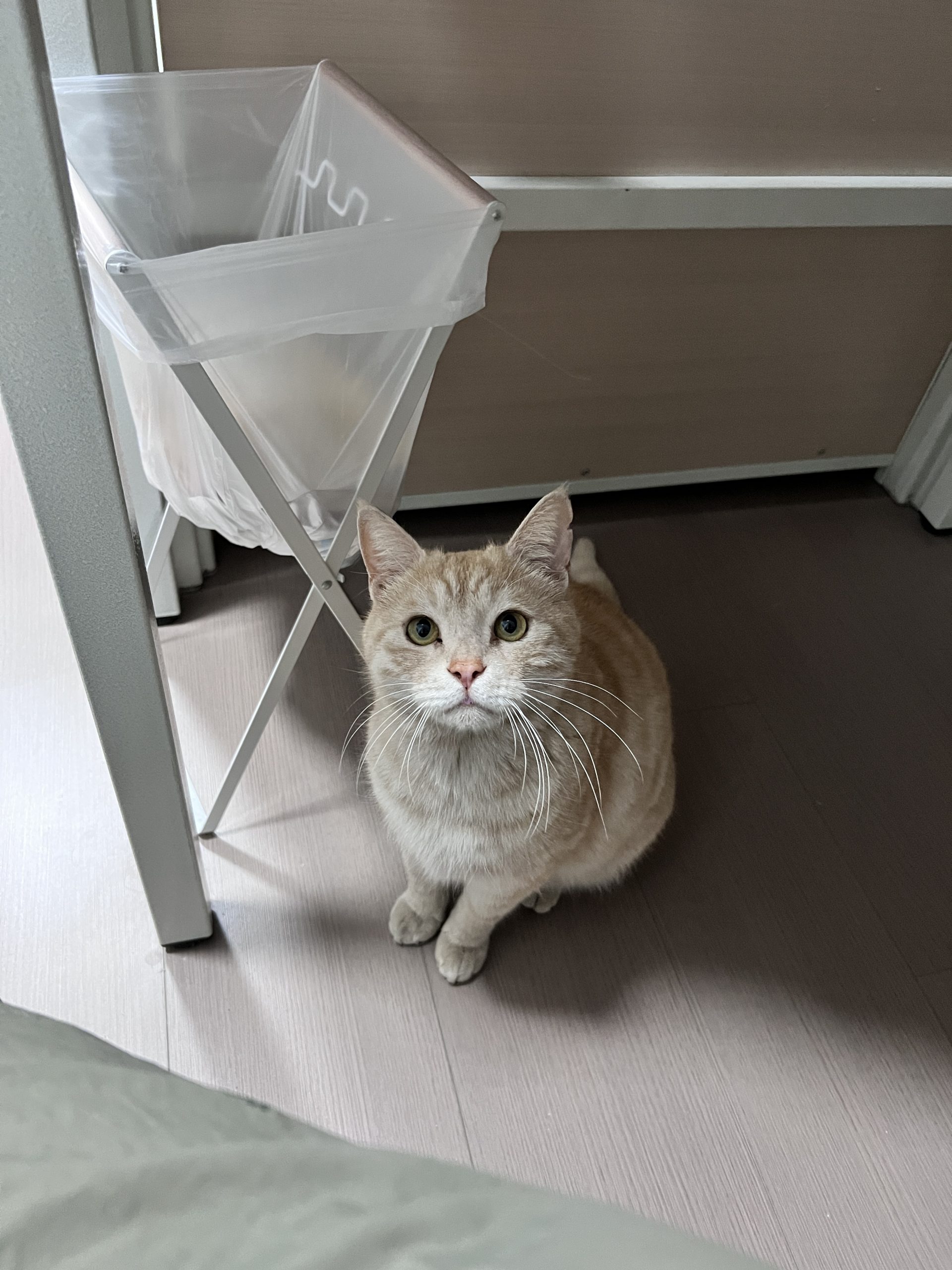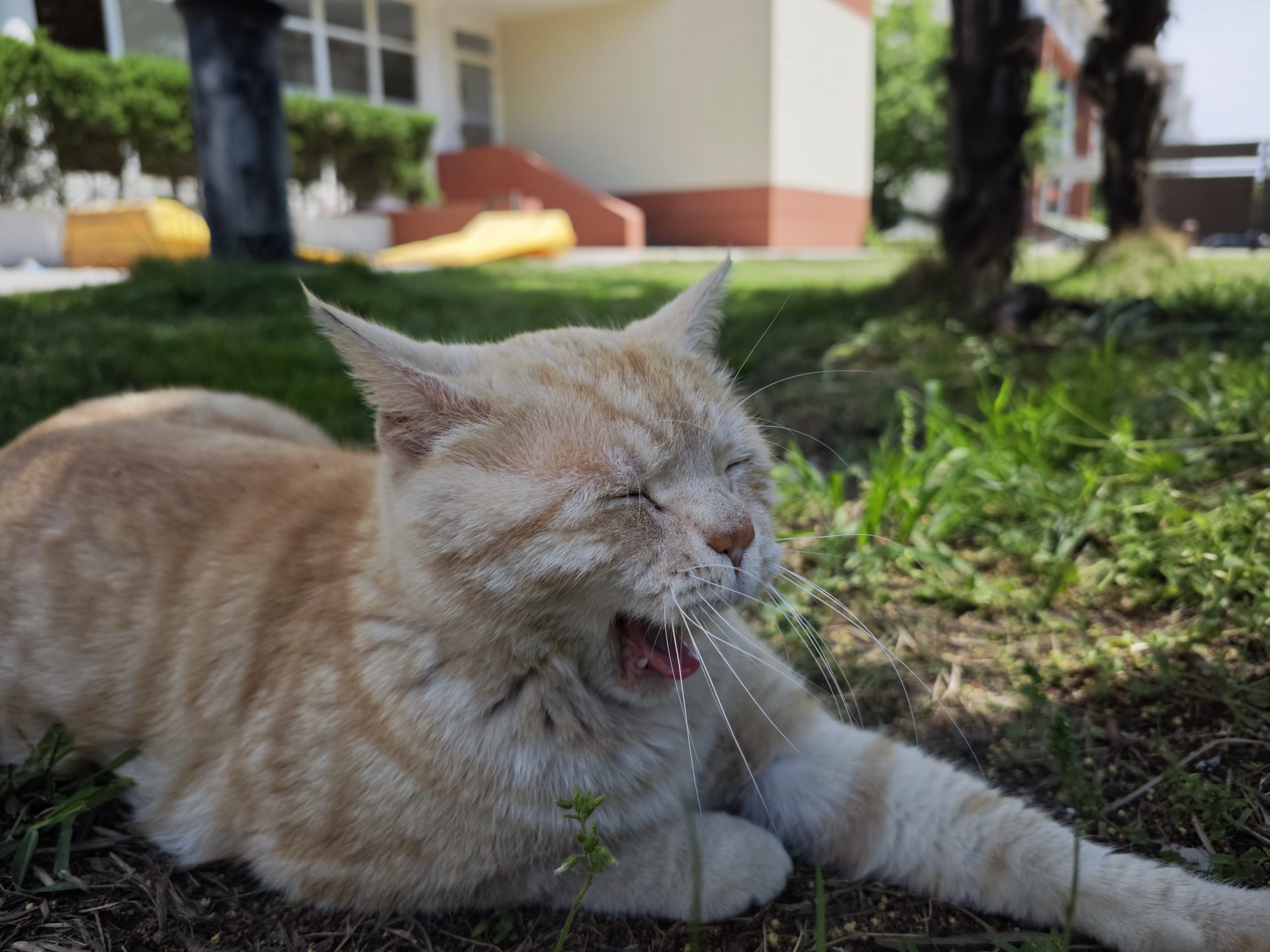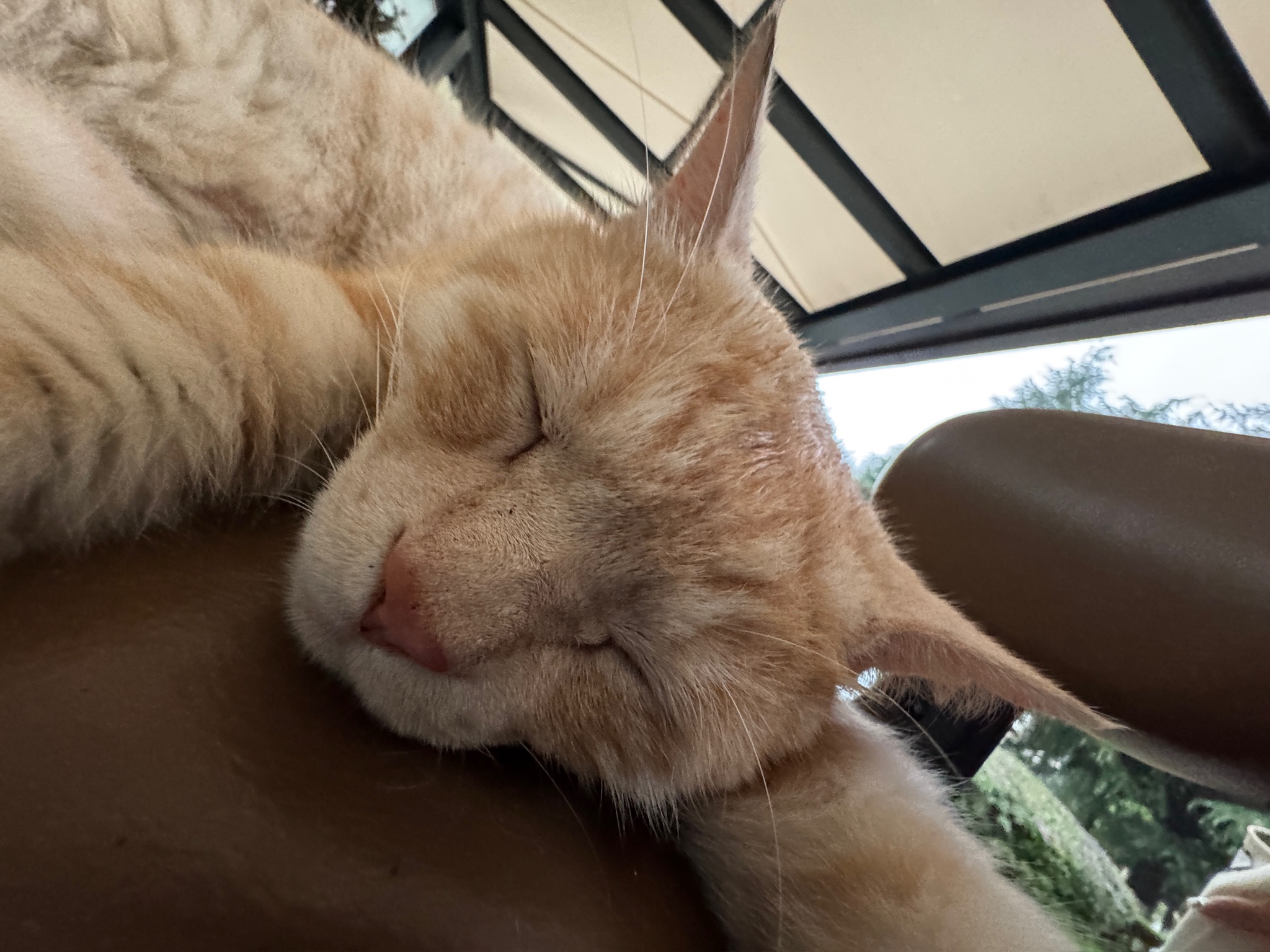 这是皮蛋,一只浅橘色、圆脸、嗓音沙哑的高冷猫猫。他常年混迹在19-21栋周边,喜欢趴台阶、霸占电动车,偶尔也会溜进宿舍蹭暖。