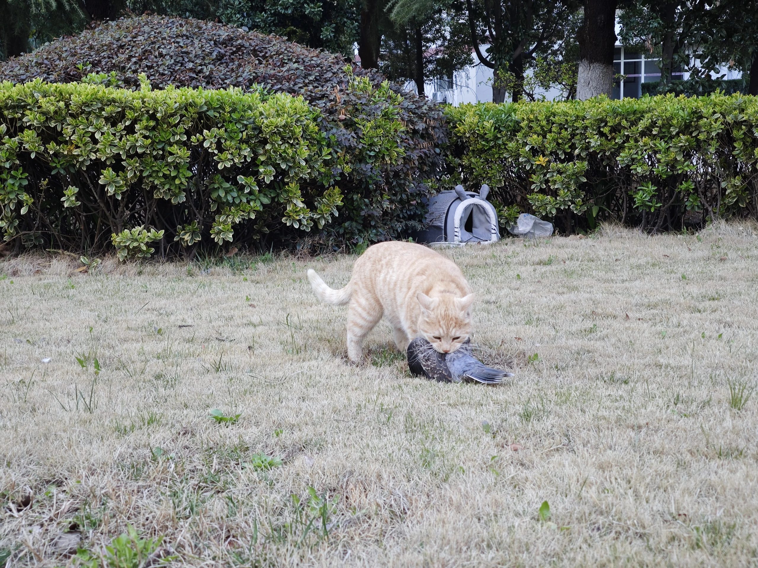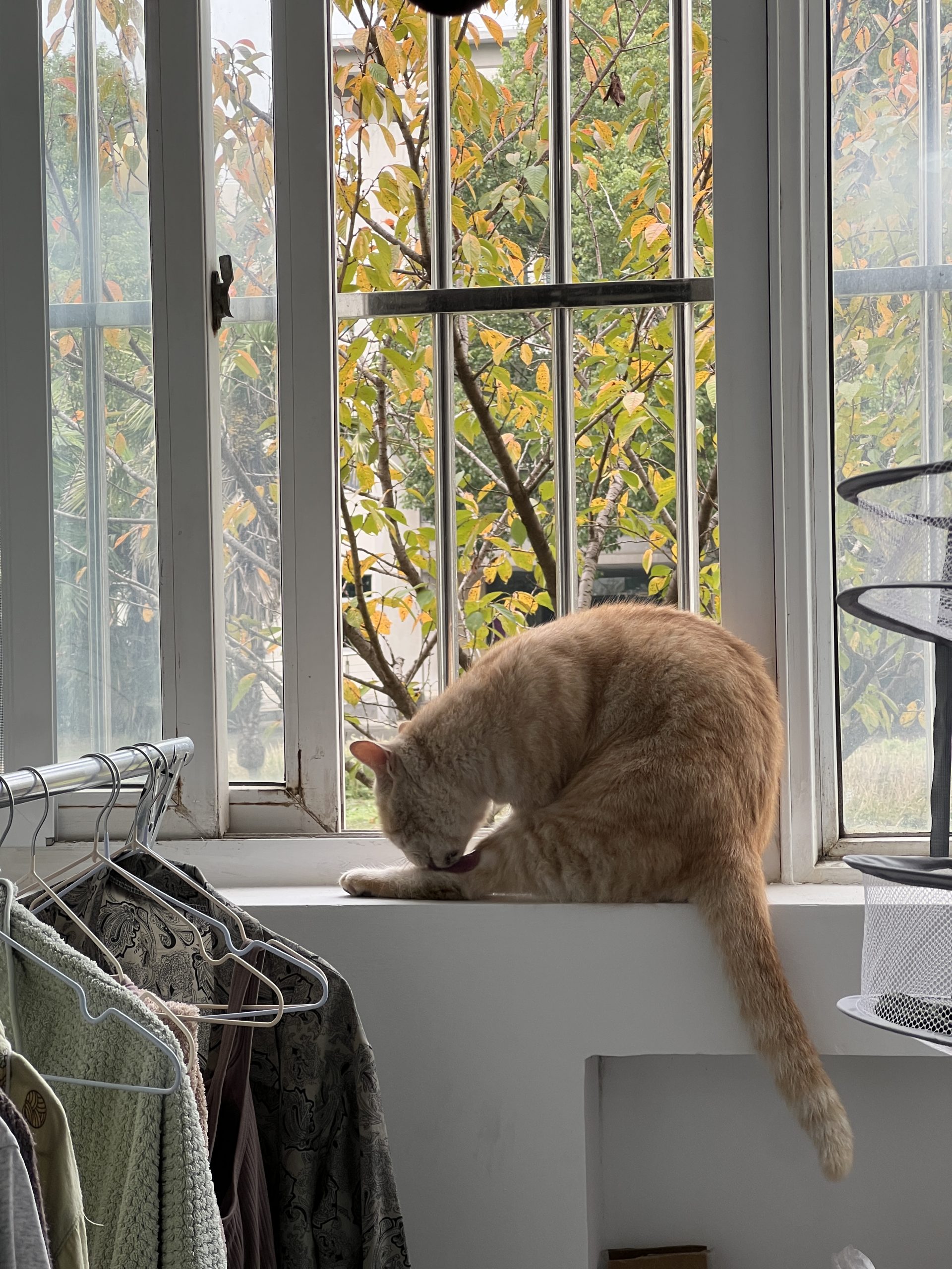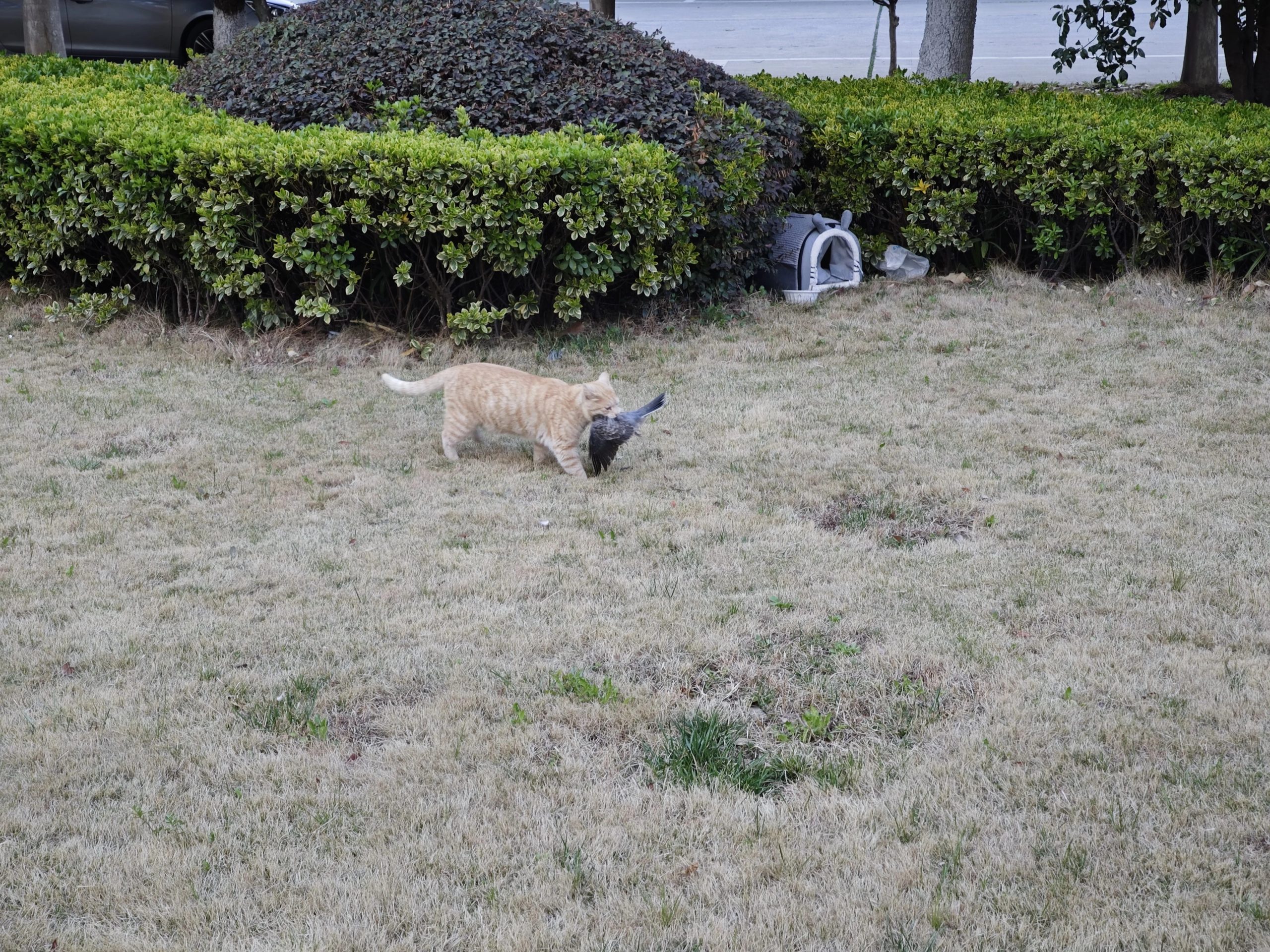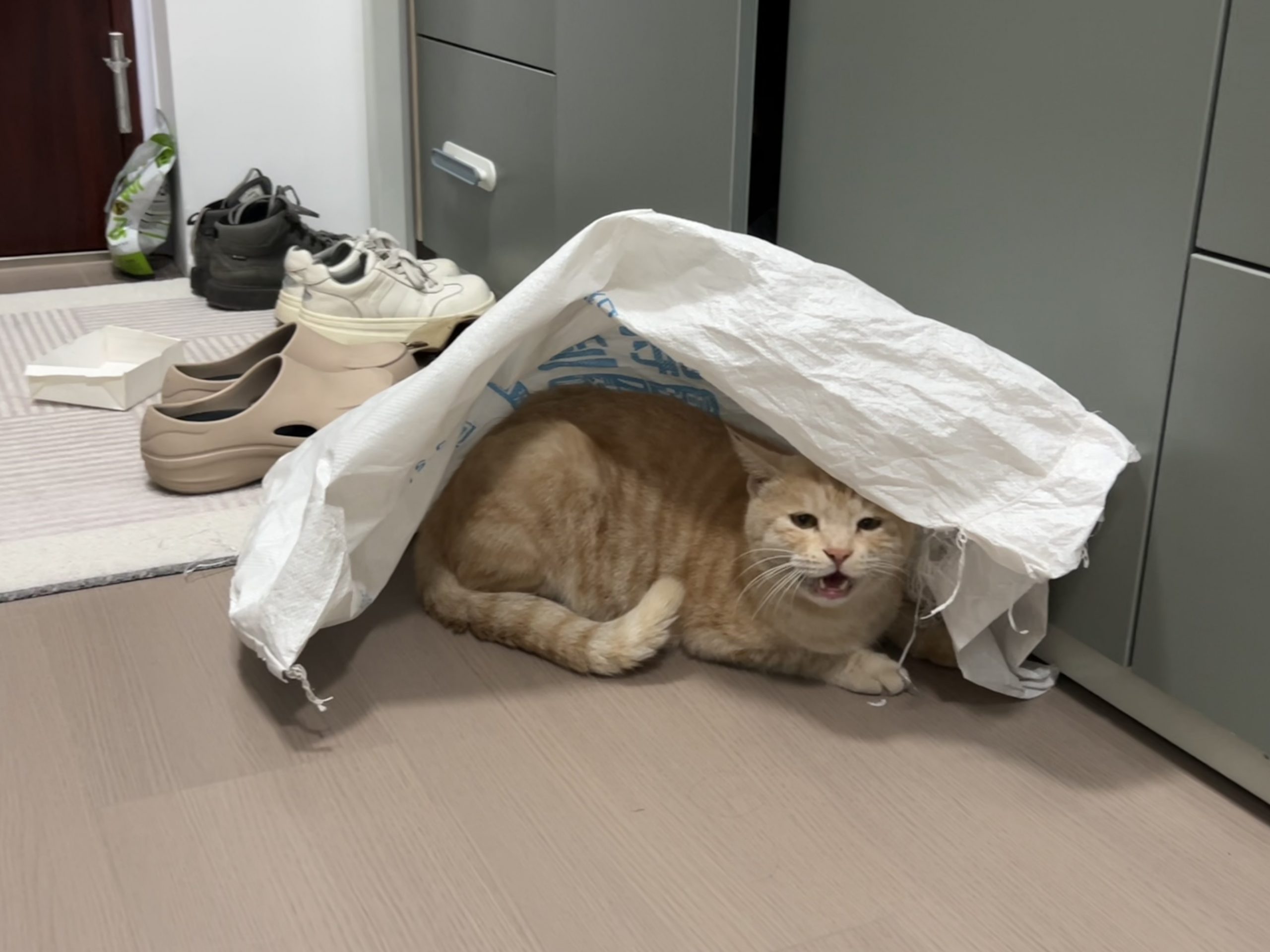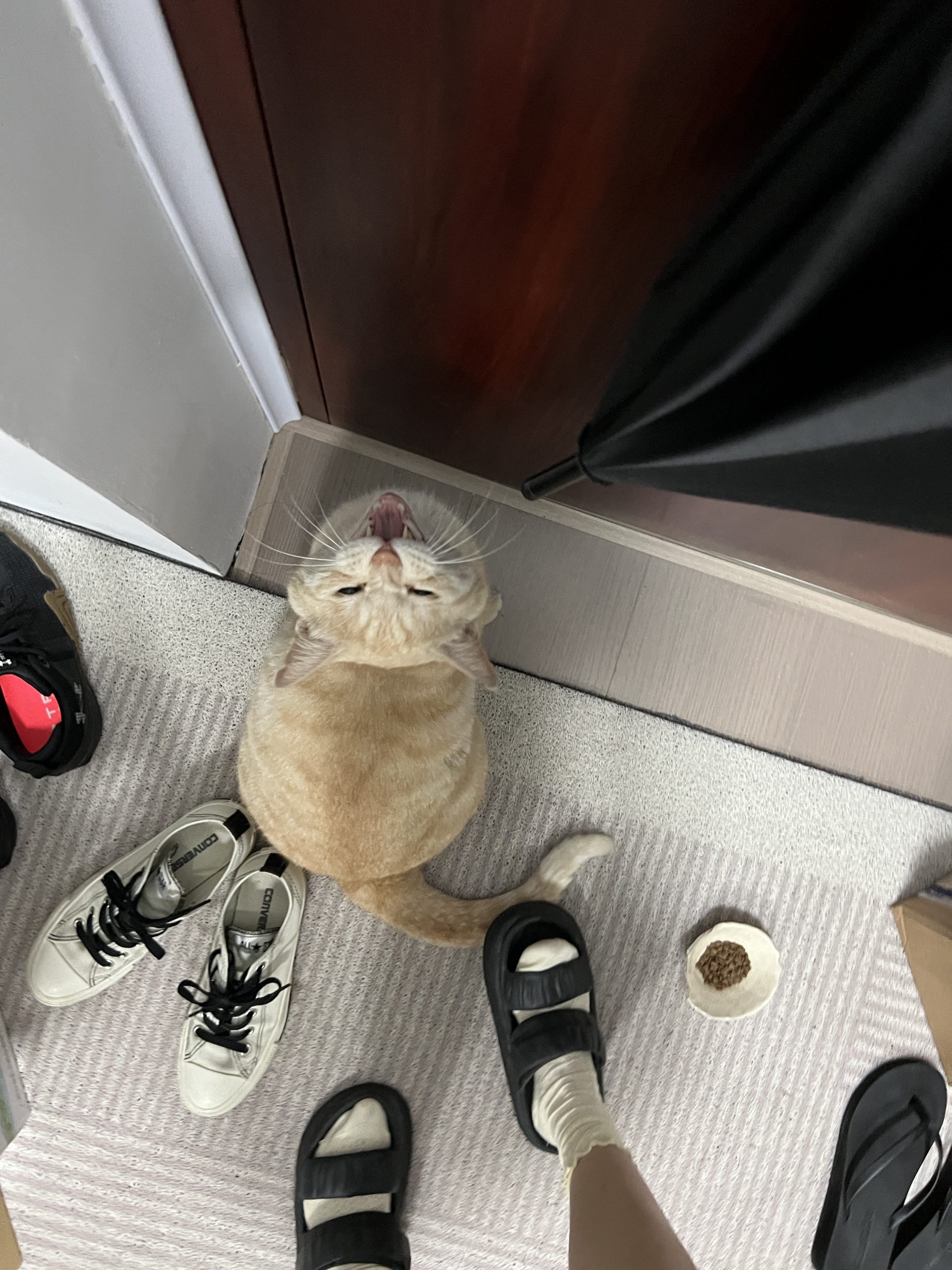 这是皮蛋,一只浅橘色、圆脸、嗓音沙哑的高冷猫猫。他常年混迹在19-21栋周边,喜欢趴台阶、霸占电动车,偶尔也会溜进宿舍蹭暖。