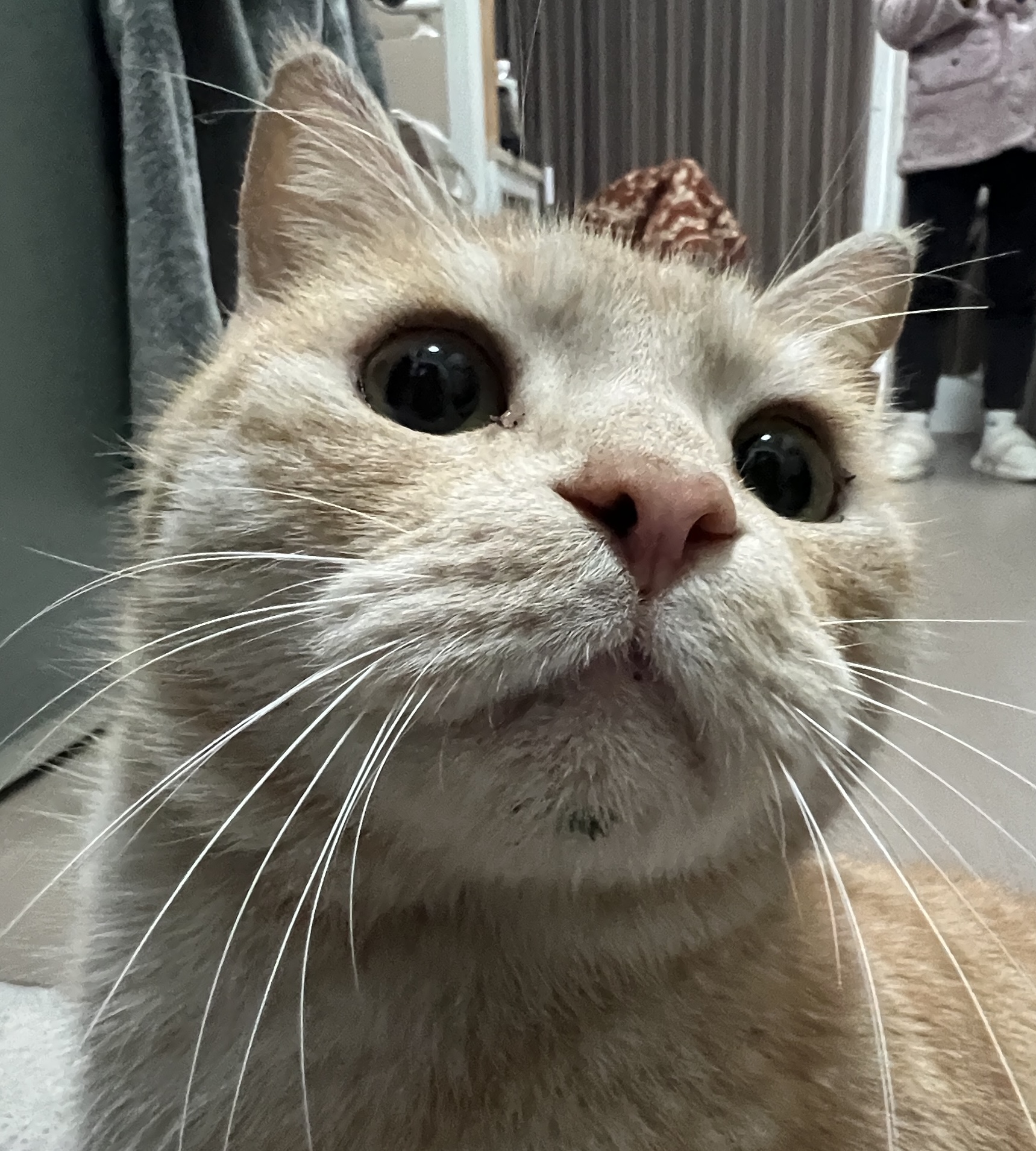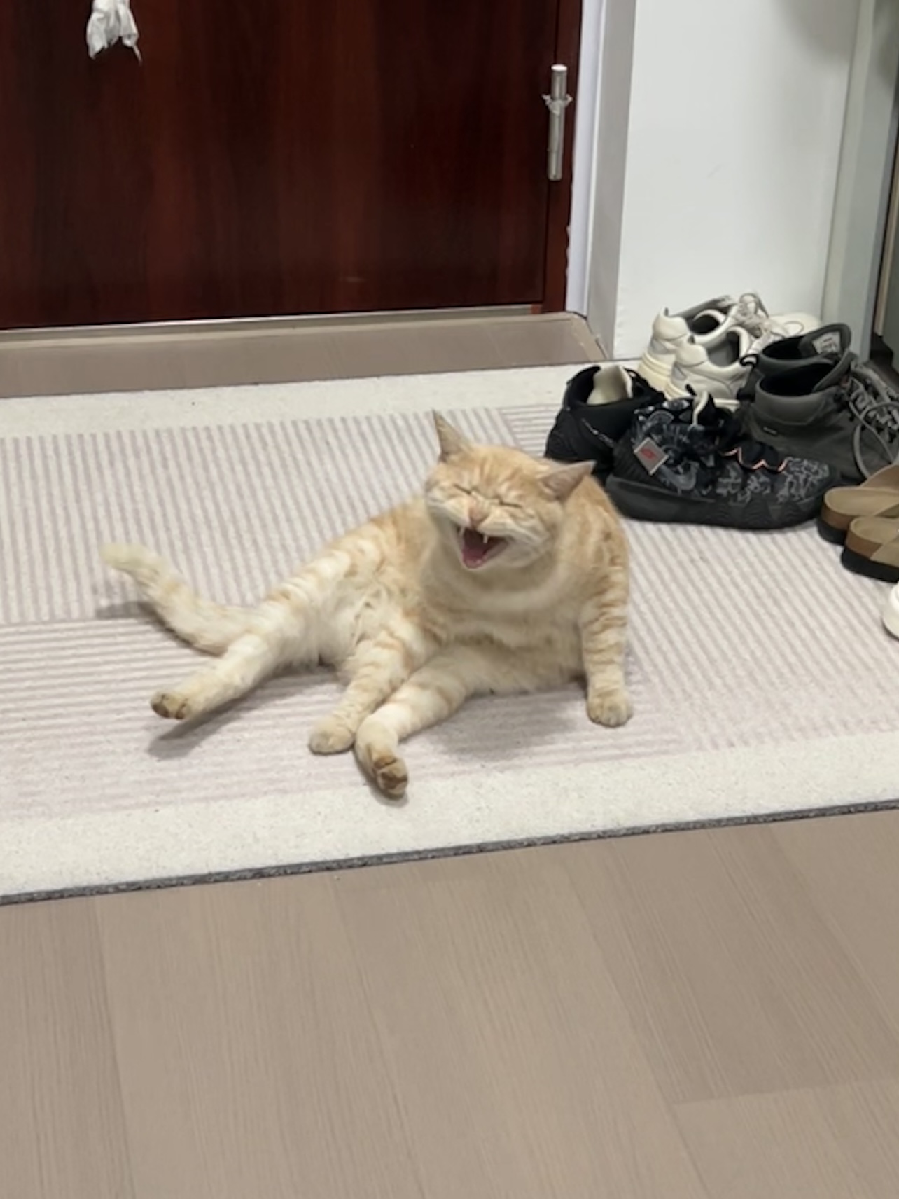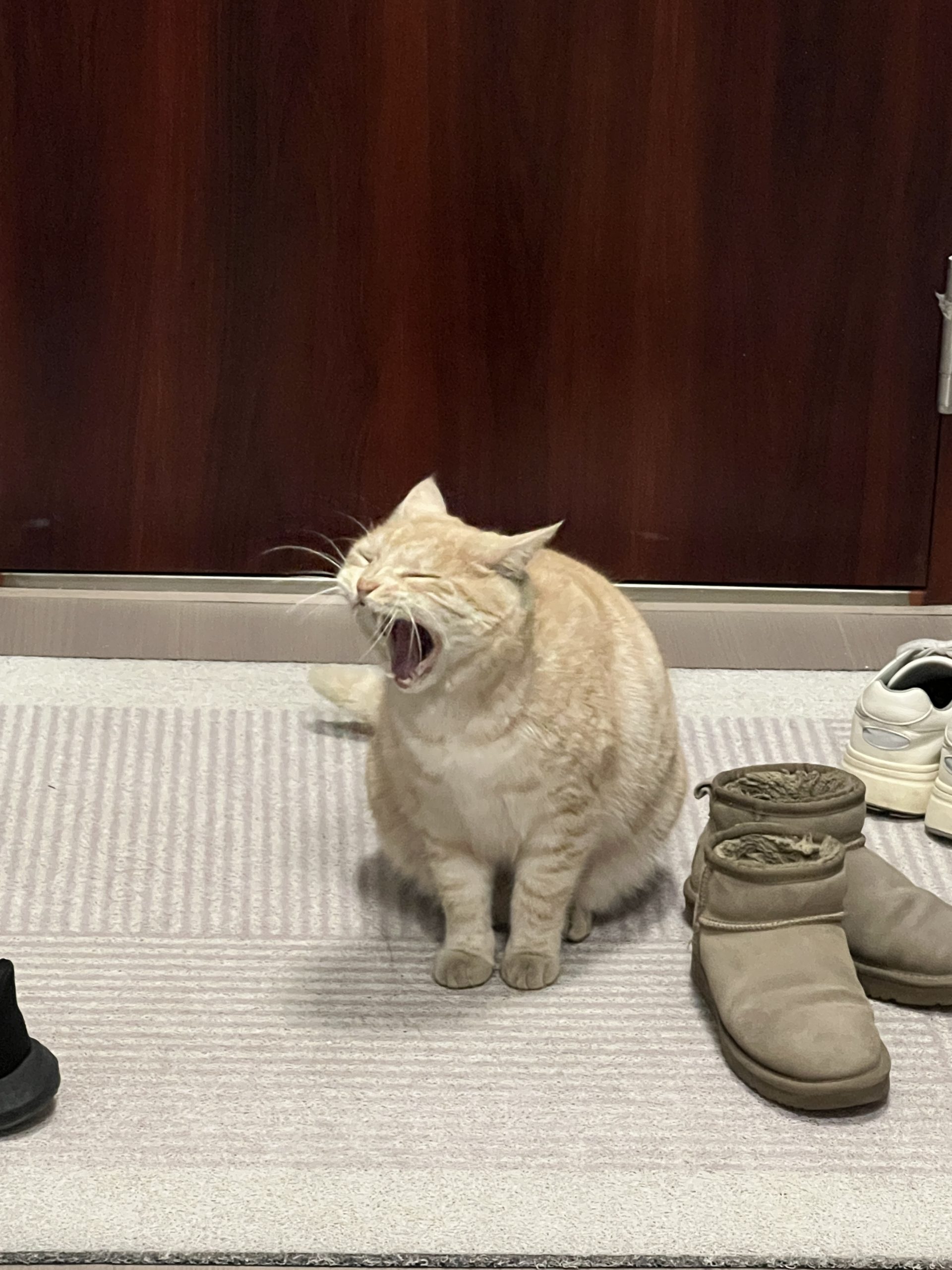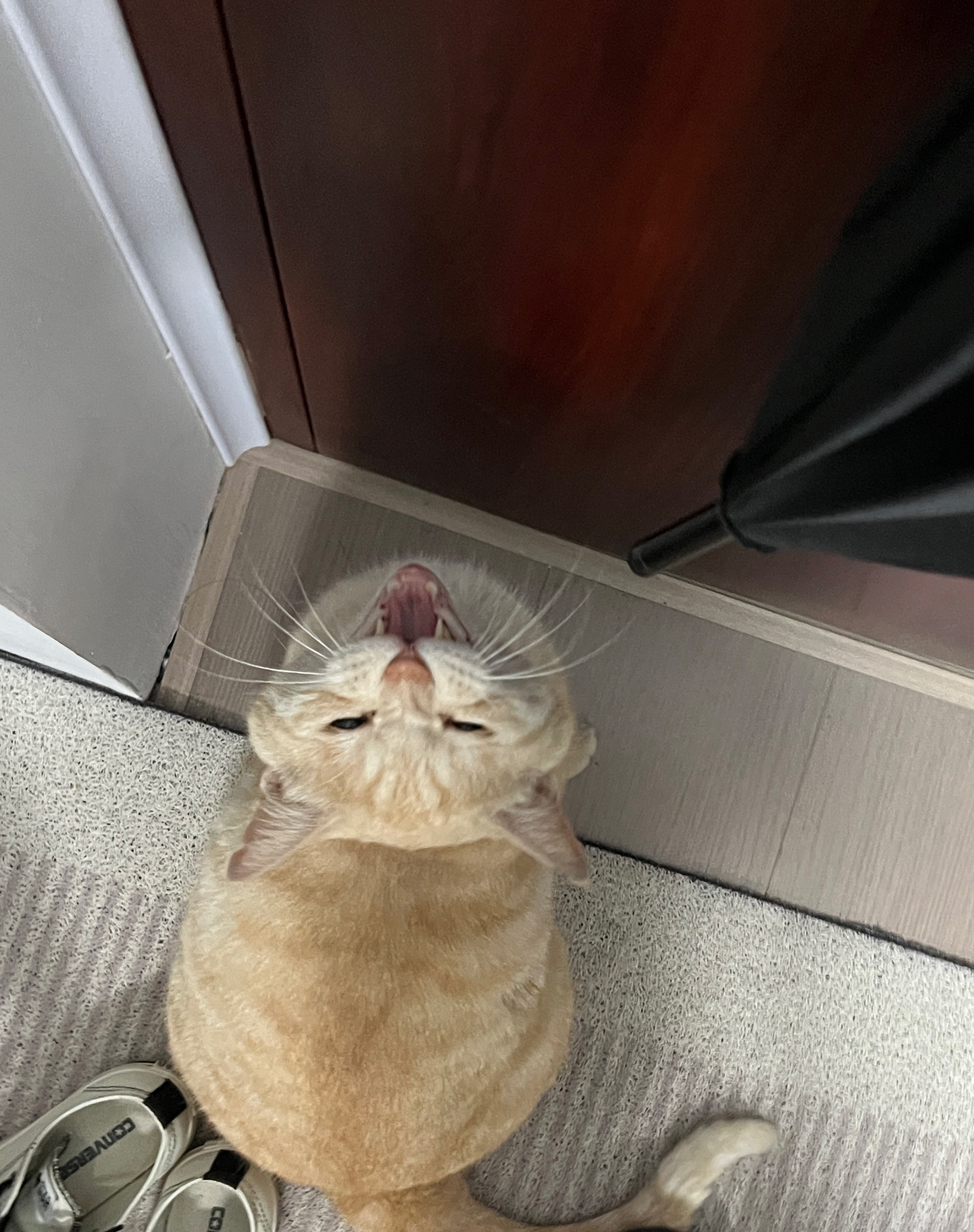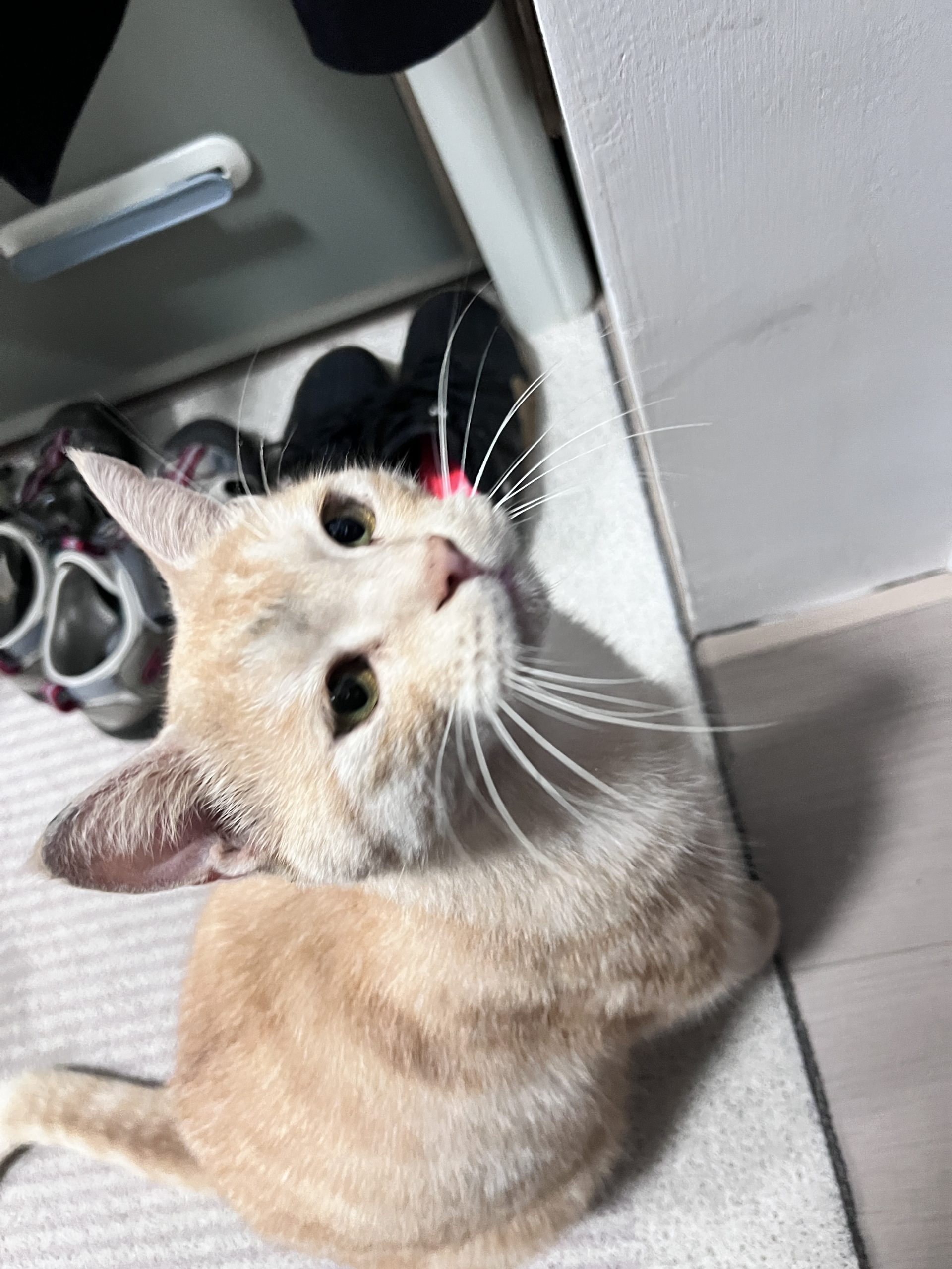 这是皮蛋,一只浅橘色、圆脸、嗓音沙哑的高冷猫猫。他常年混迹在19-21栋周边,喜欢趴台阶、霸占电动车,偶尔也会溜进宿舍蹭暖。